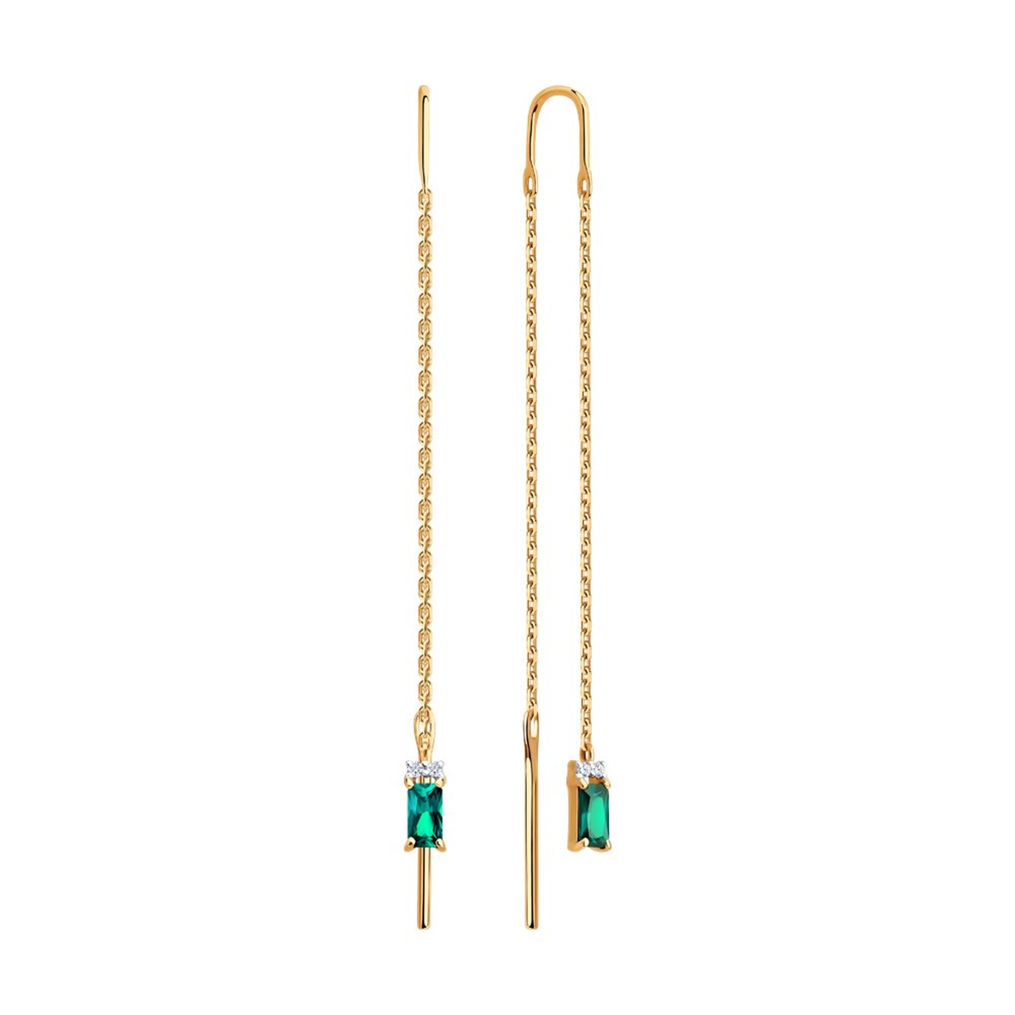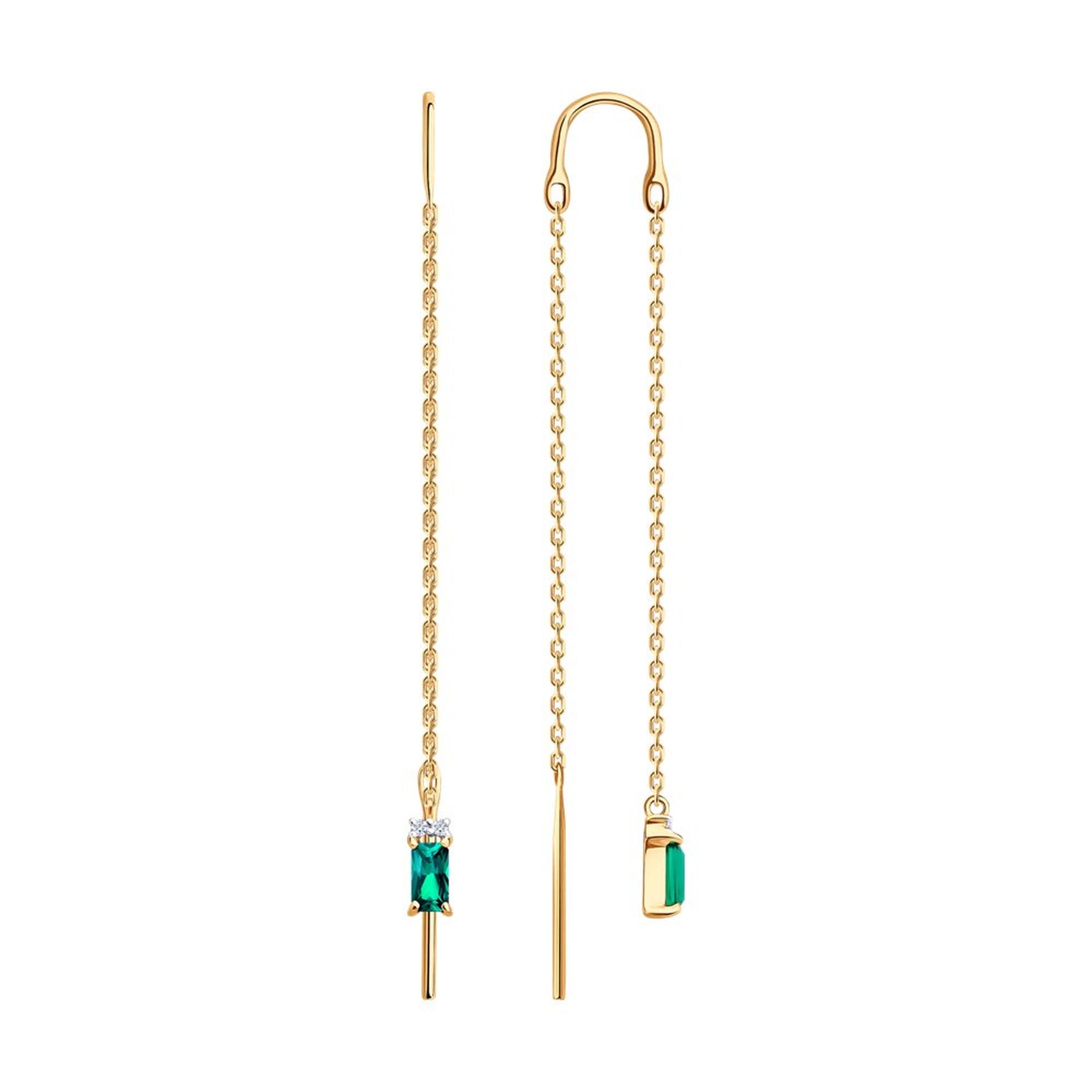 Золотые серьги SOKOLOV с бриллиантом и гидротермальным изумрудом 72-00510
