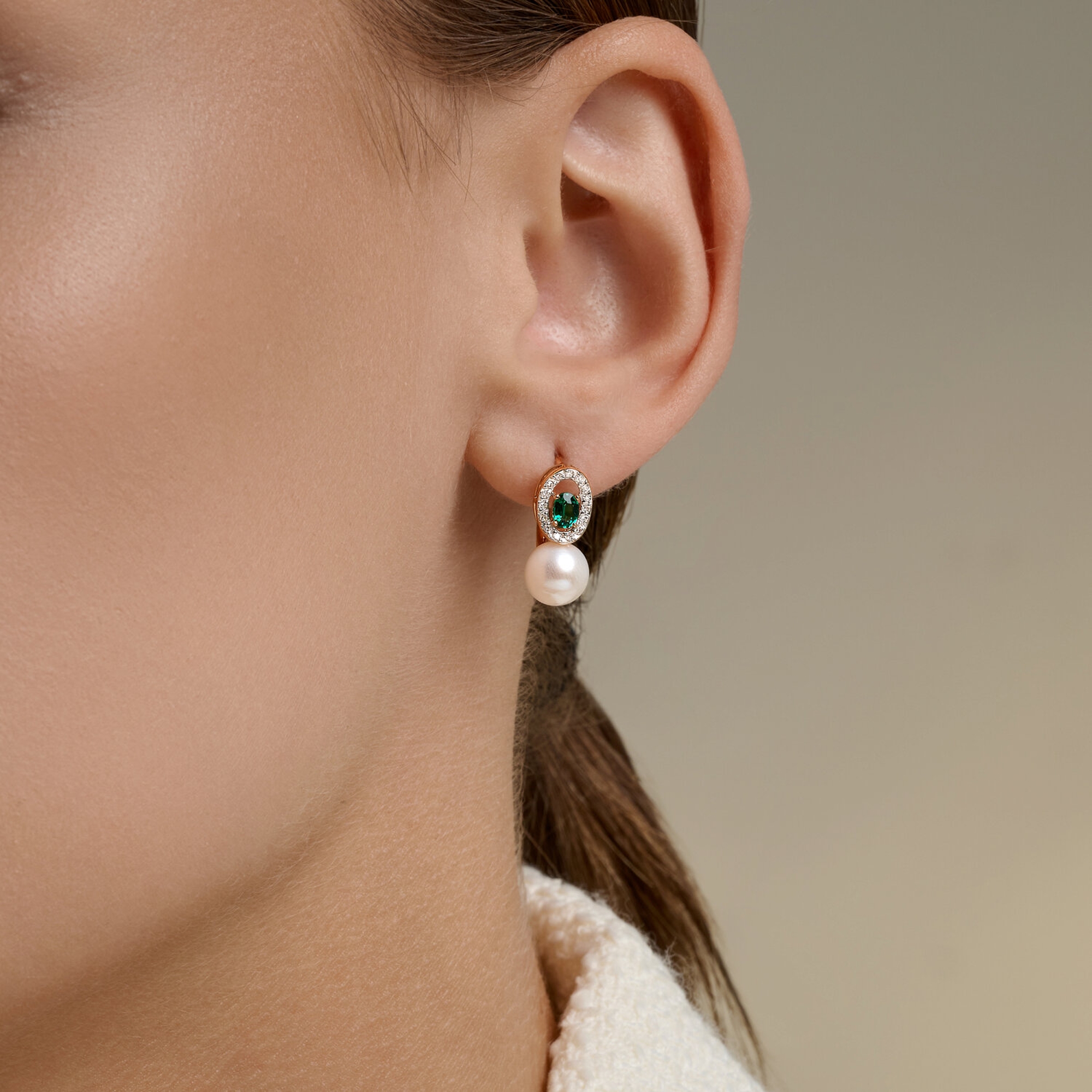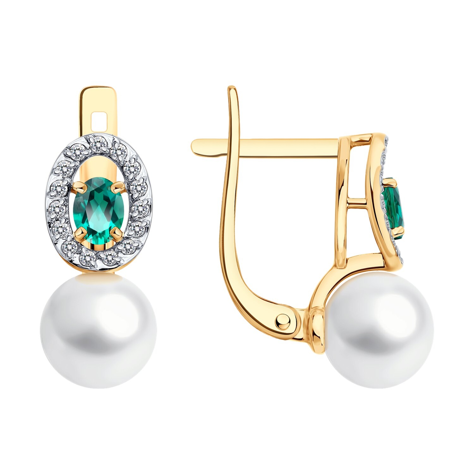 Золотые серьги SOKOLOV с бриллиантом, жемчугом и гидротермальным изумрудом 79-20093