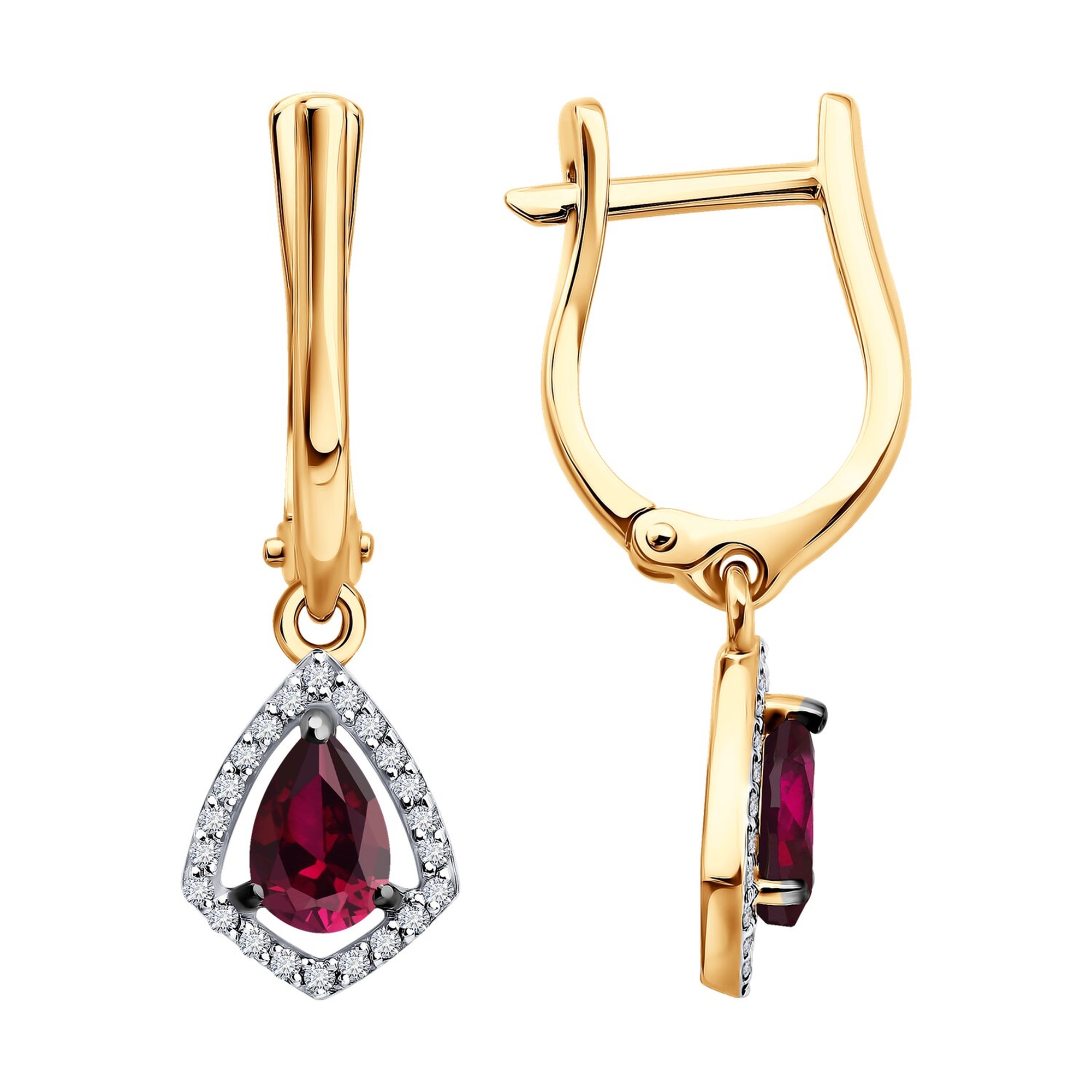 Золотые серьги SOKOLOV с бриллиантом и рубином 51-221-00850-2