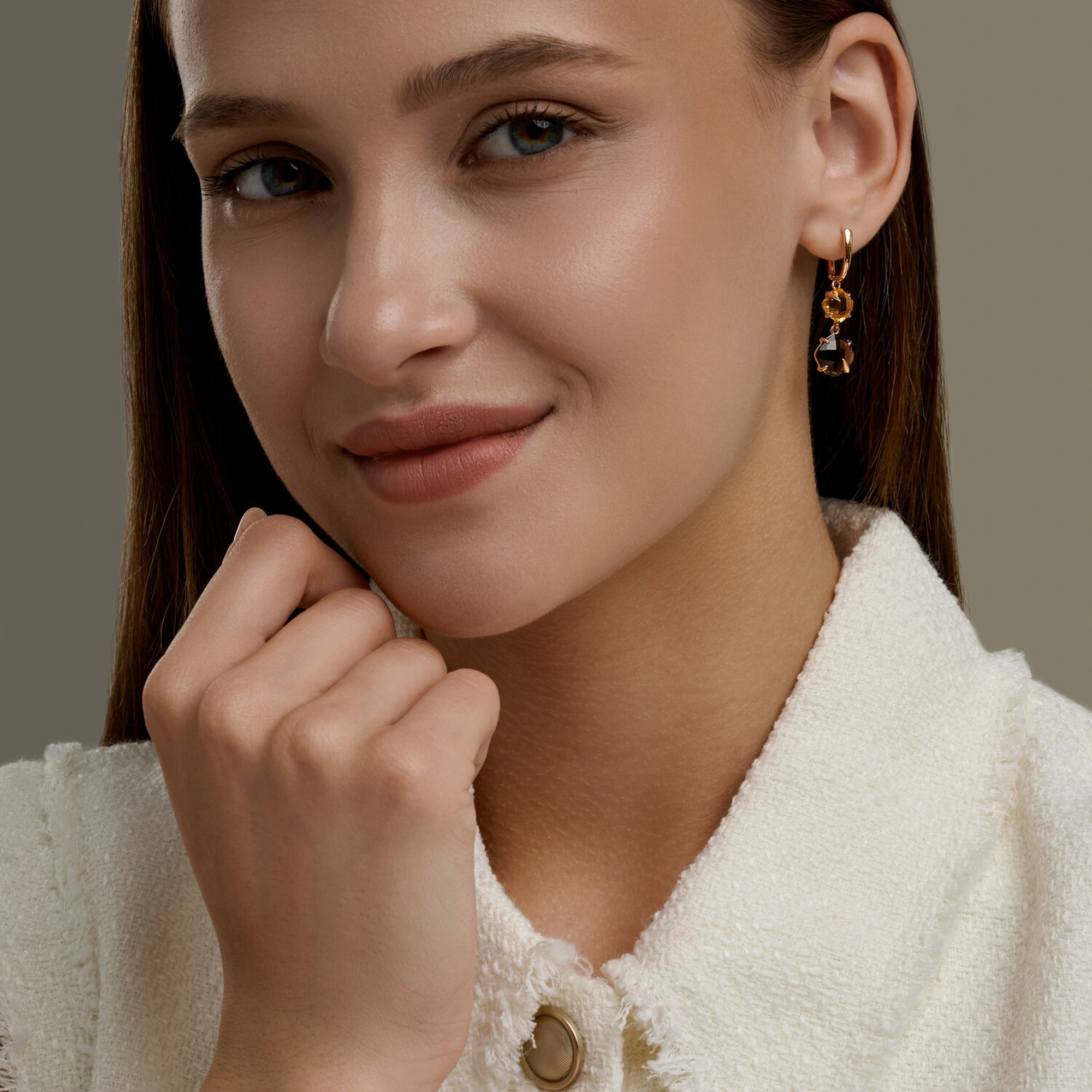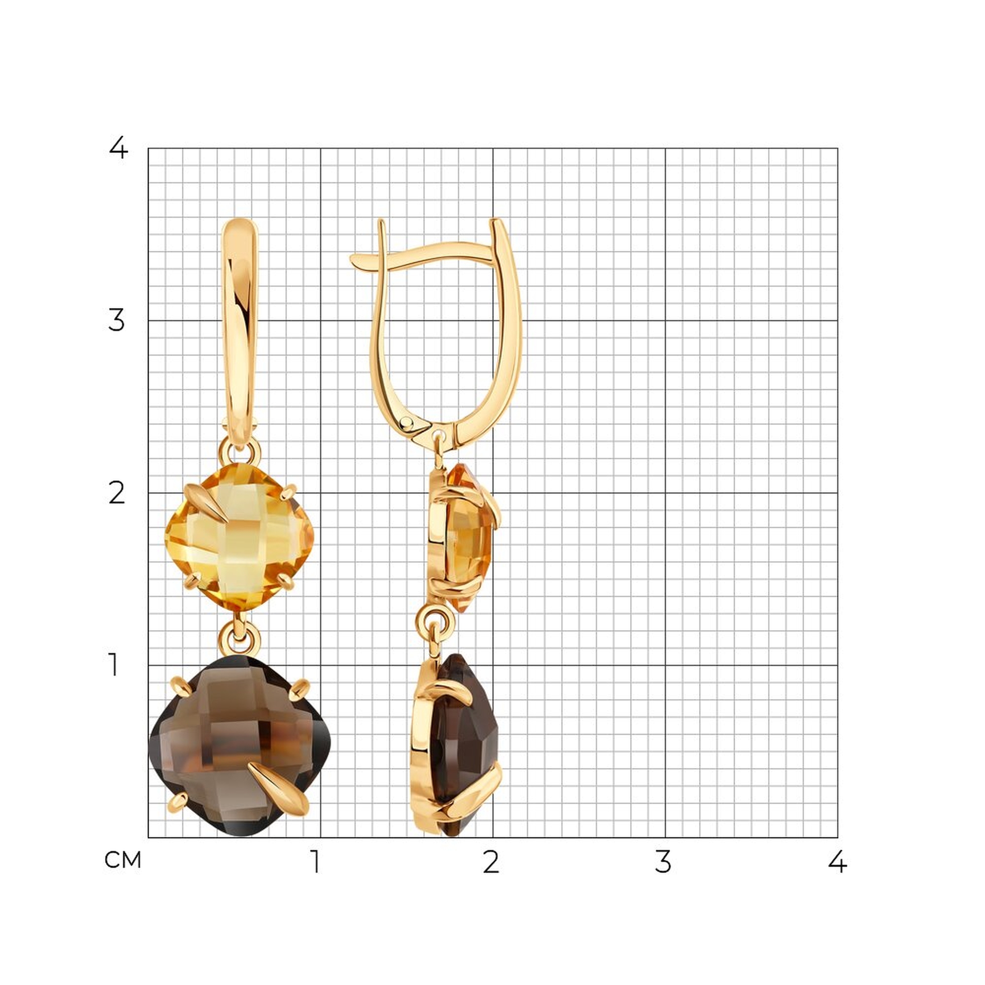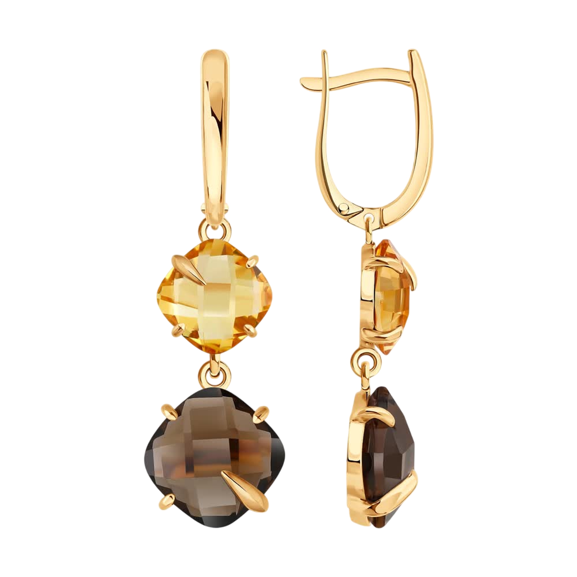 Золотые серьги SOKOLOV с цитрином и раухтопазом 729272