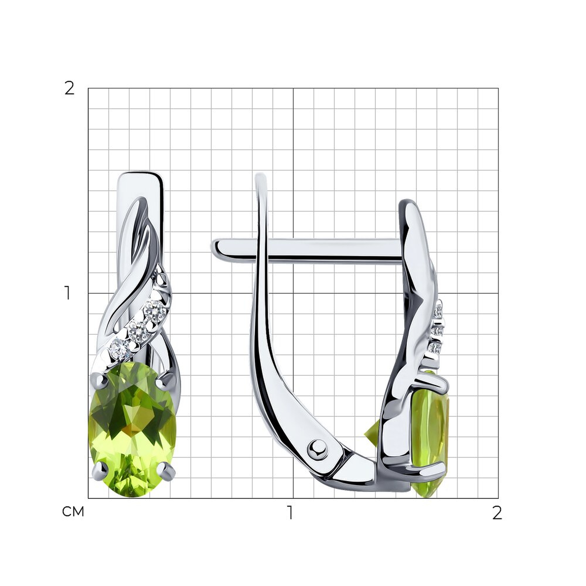 Серебряные серьги Diamant с фианитом и хризолитом 94-320-00177-2