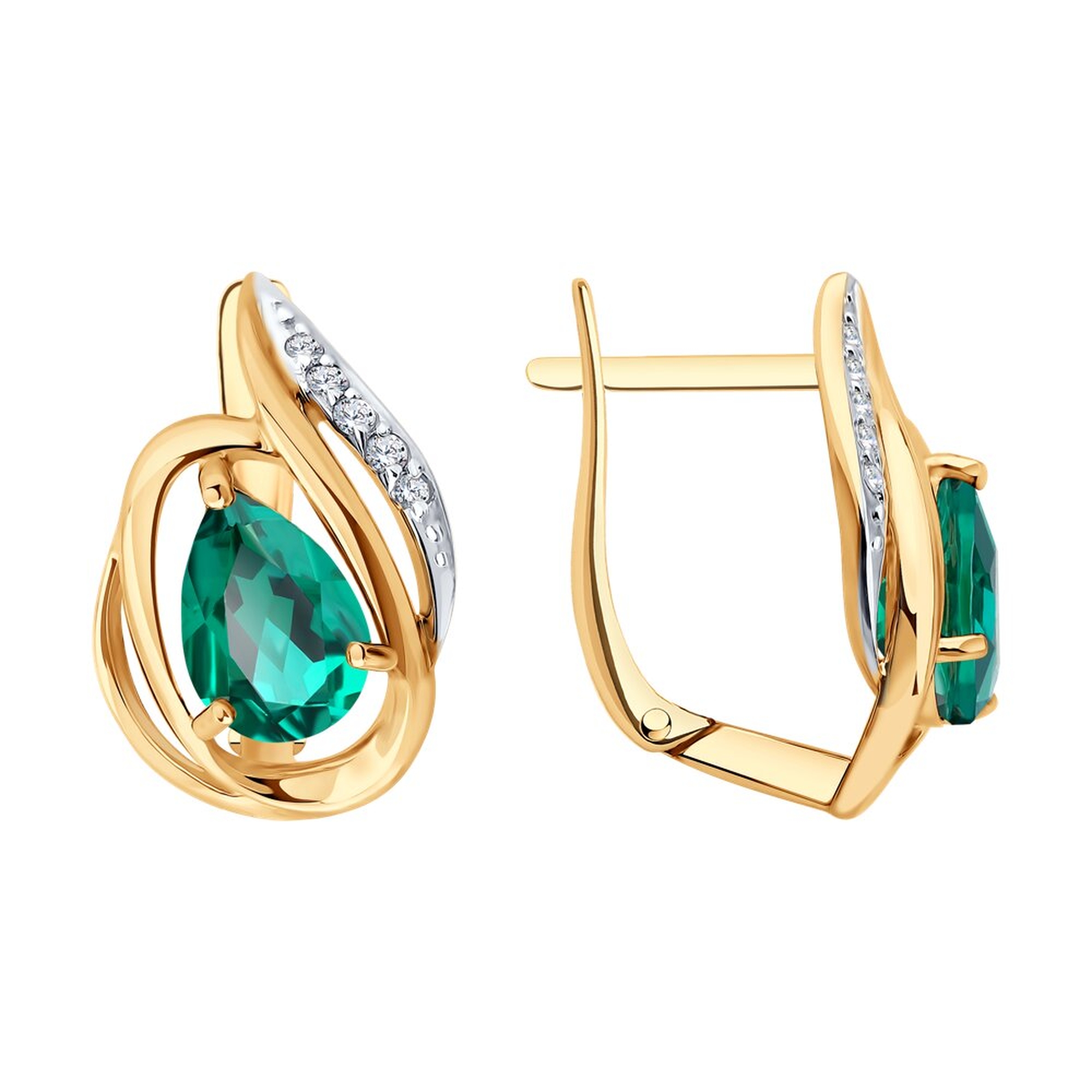 Золотые серьги SOKOLOV с бриллиантом и гидротермальным изумрудом 72-00540