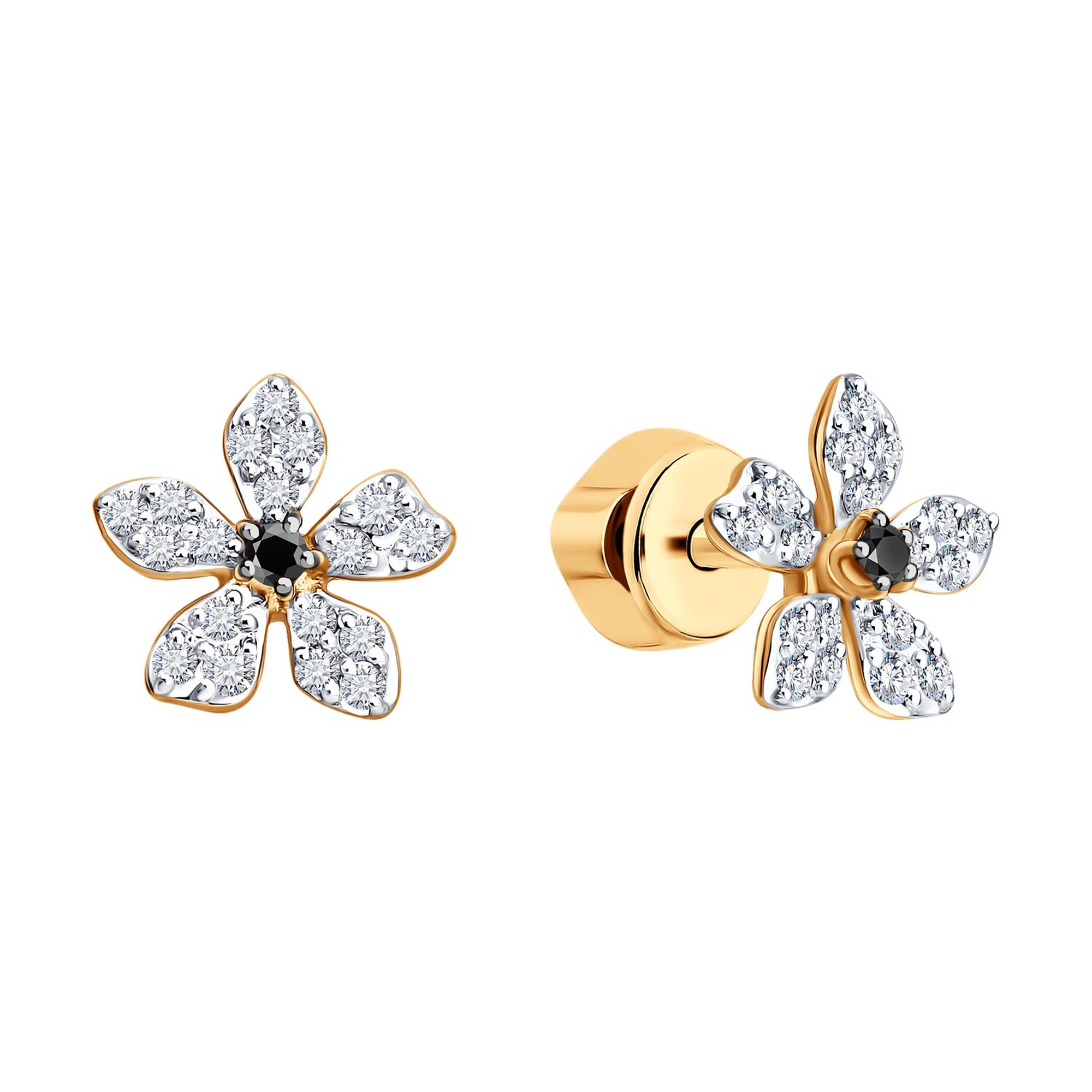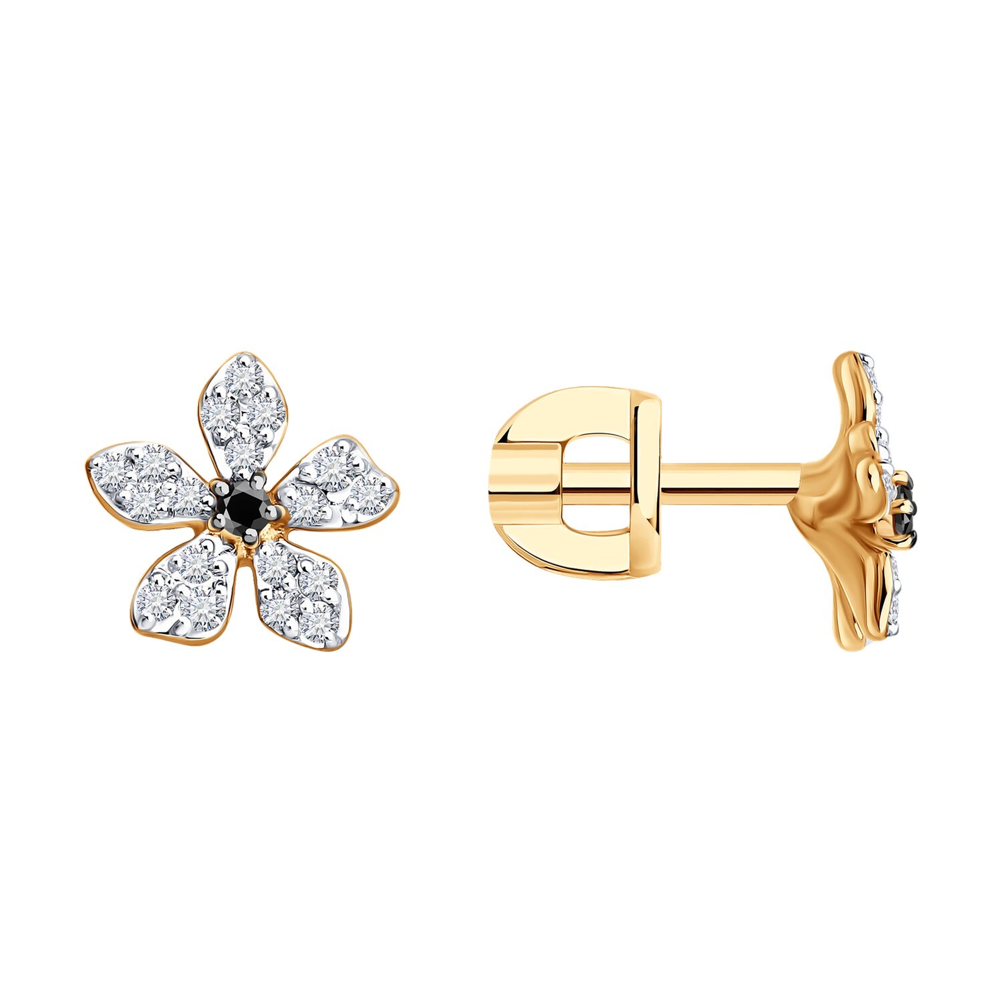 Золотые серьги SOKOLOV с бриллиантом и чёрным бриллиантом 7020176