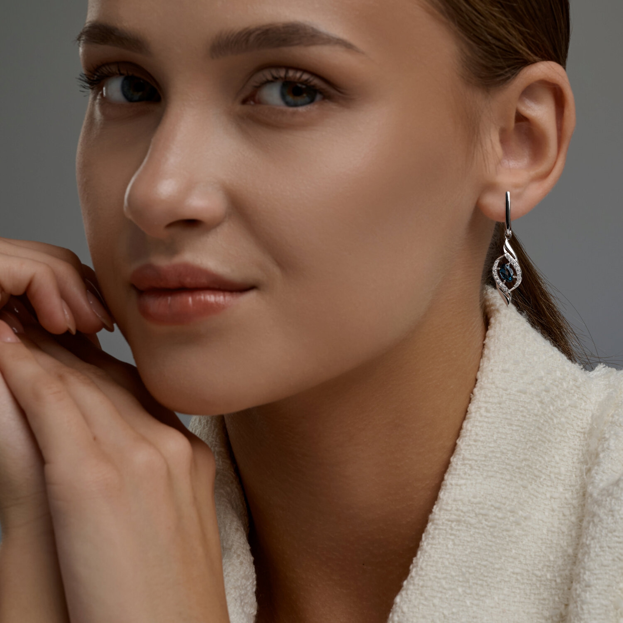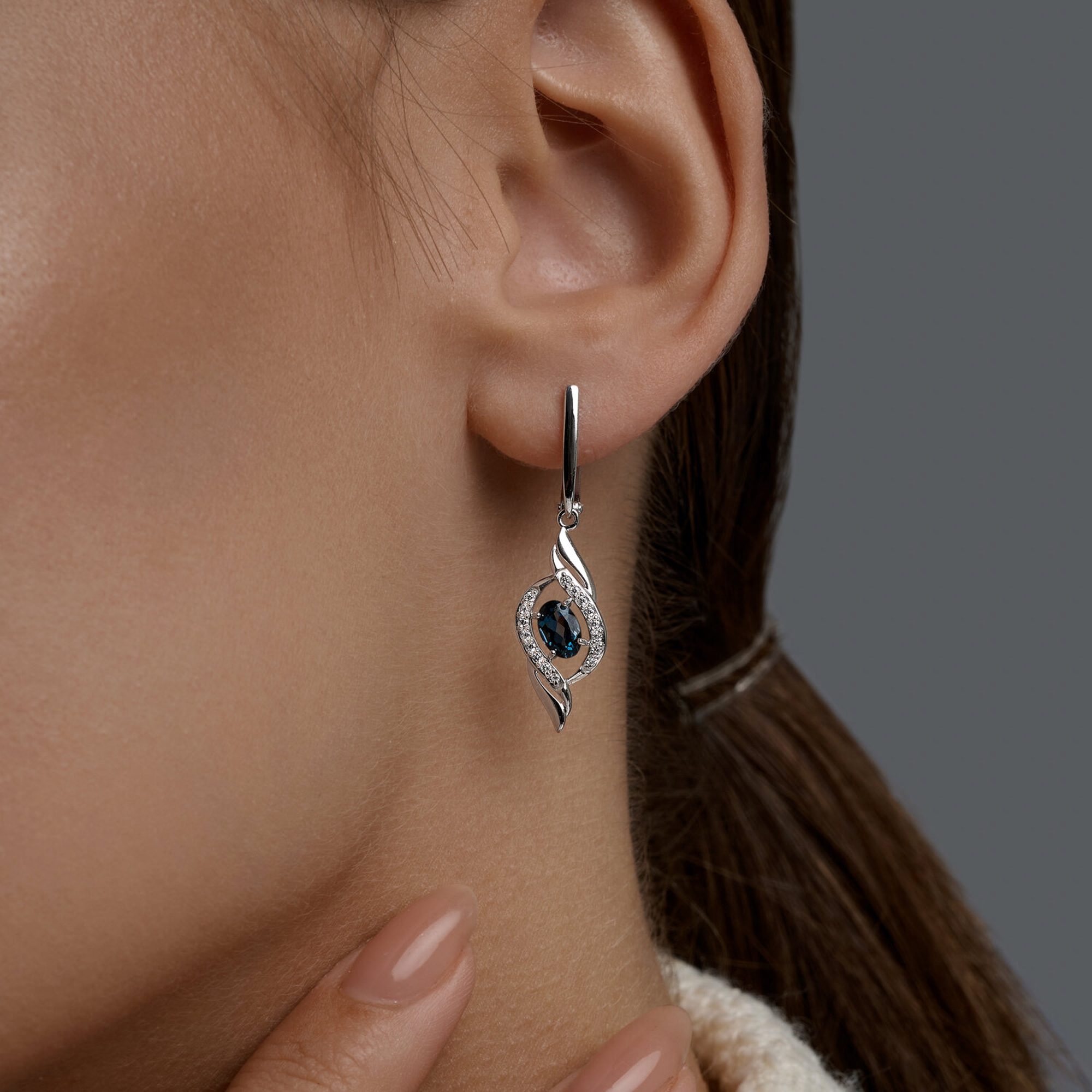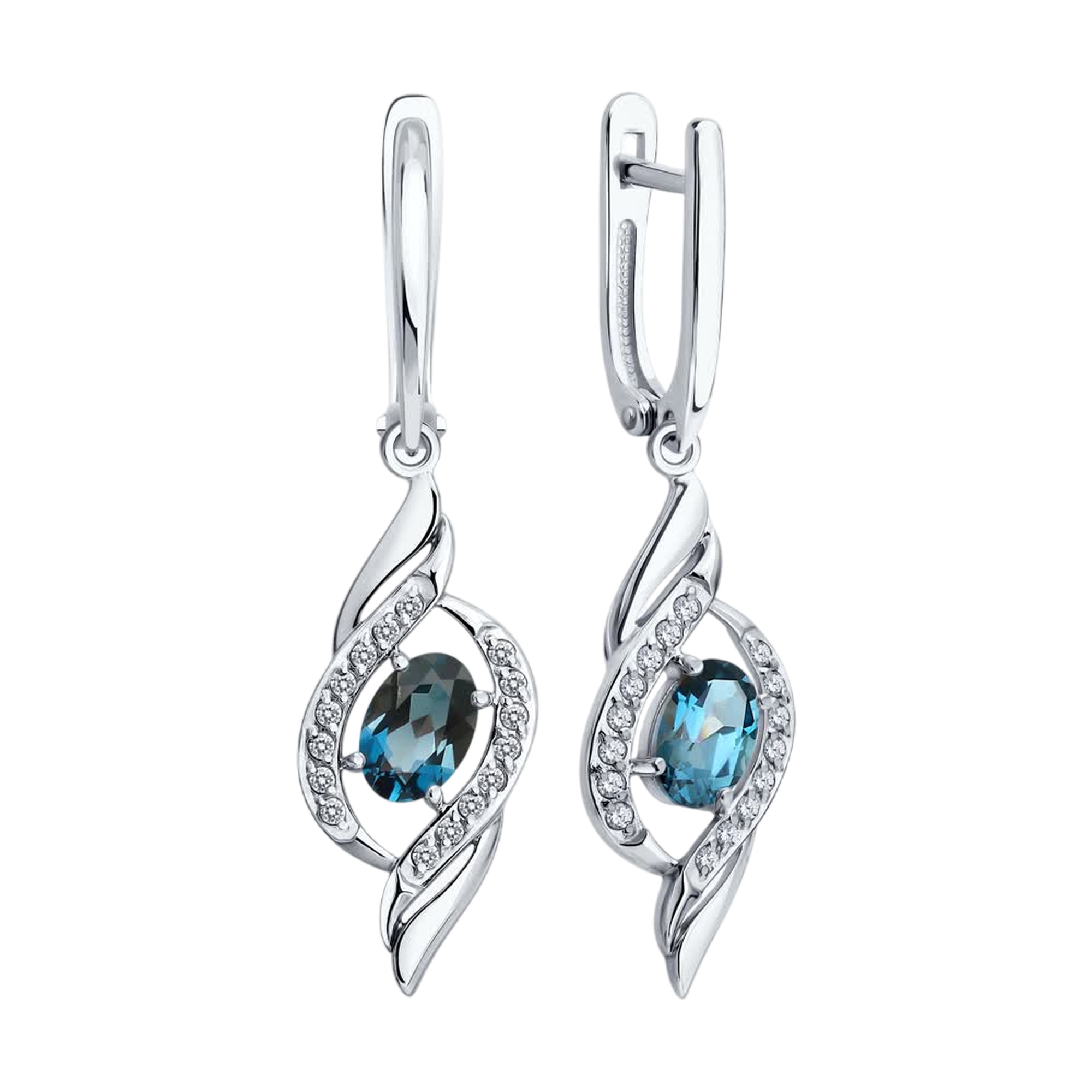 Серьги из белого золота SOKOLOV с фианитом и Лондон топазом 729332-3