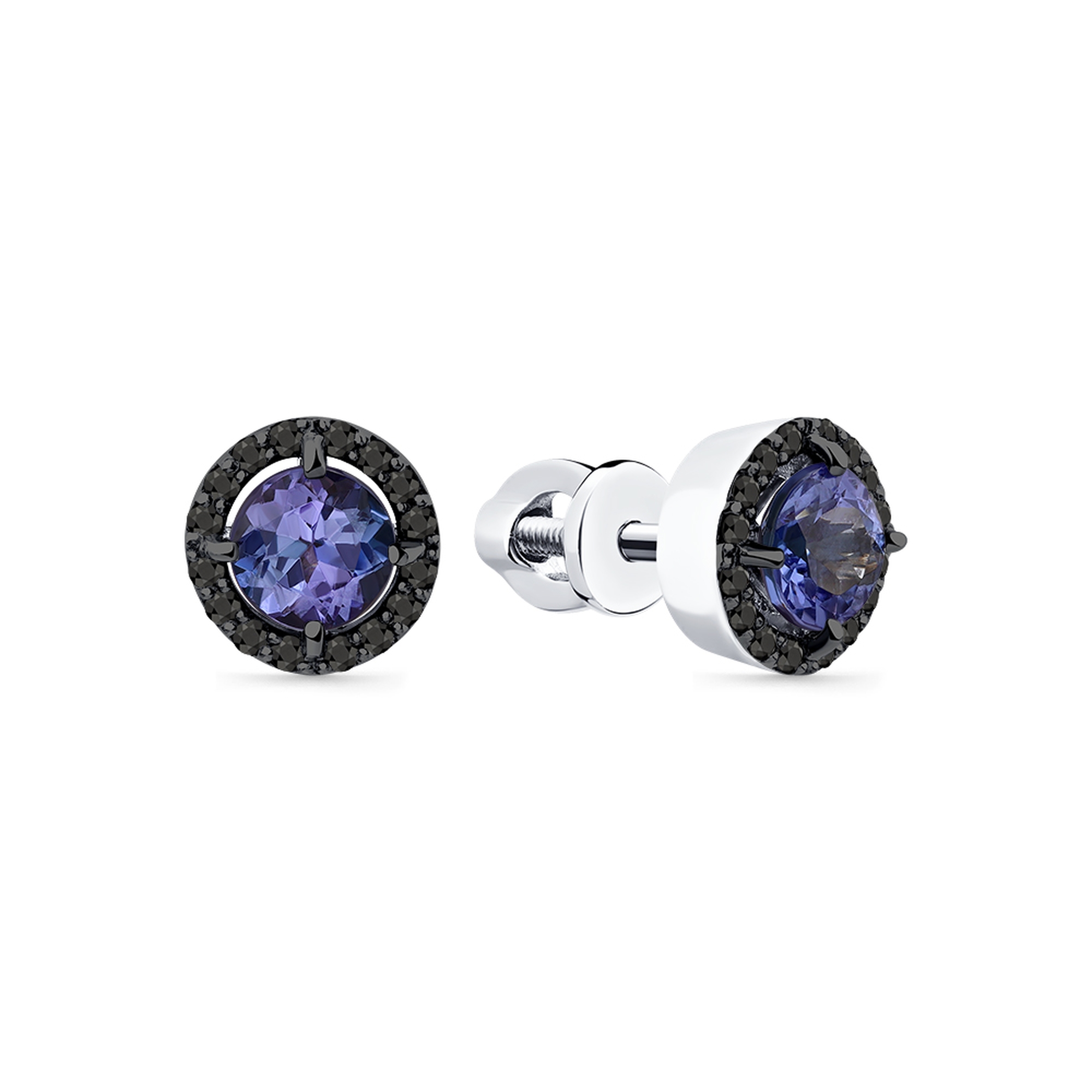 Серьги из белого золота Мастер Бриллиант с танзанитом и чёрным бриллиантом 05M2-202068-00-55