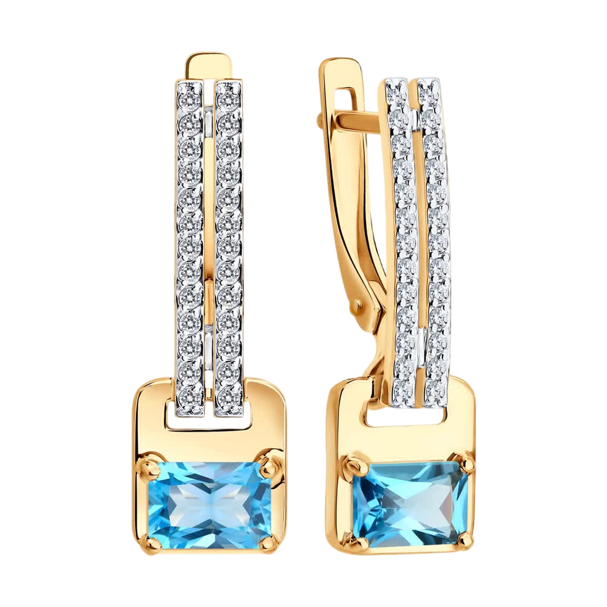 Золотые серьги Diamant с топазом и фианитом 51-321-01285-1