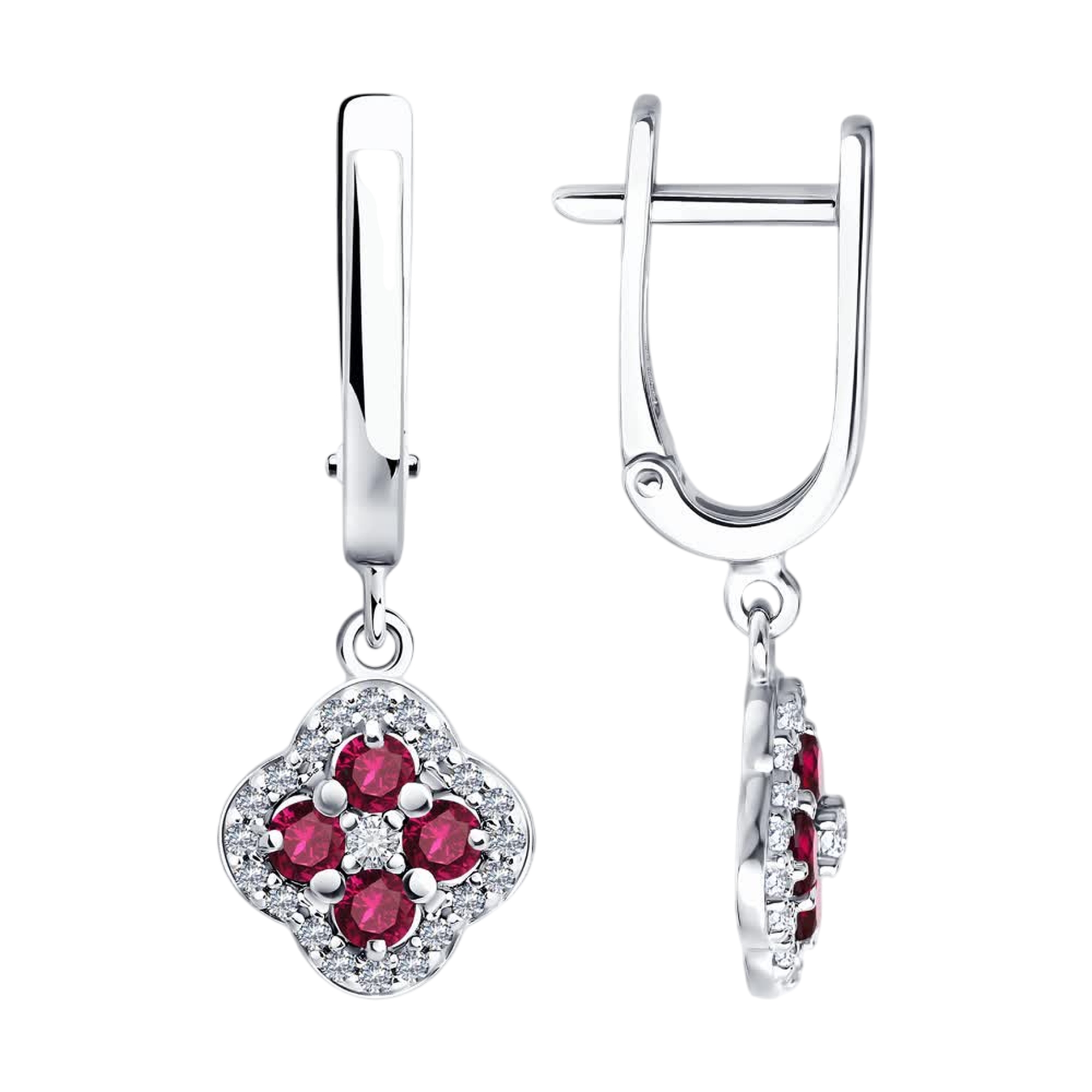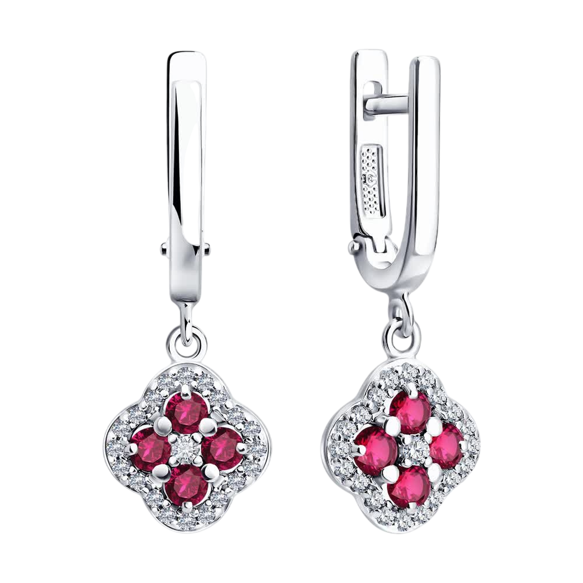 Серебряные серьги SOKOLOV с фианитом и рубином 64020007