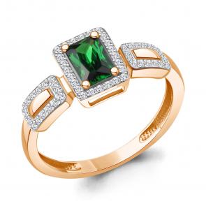Золотые серьги AQUAMARINE с бриллиантом и гидротермальным изумрудом 943388ки