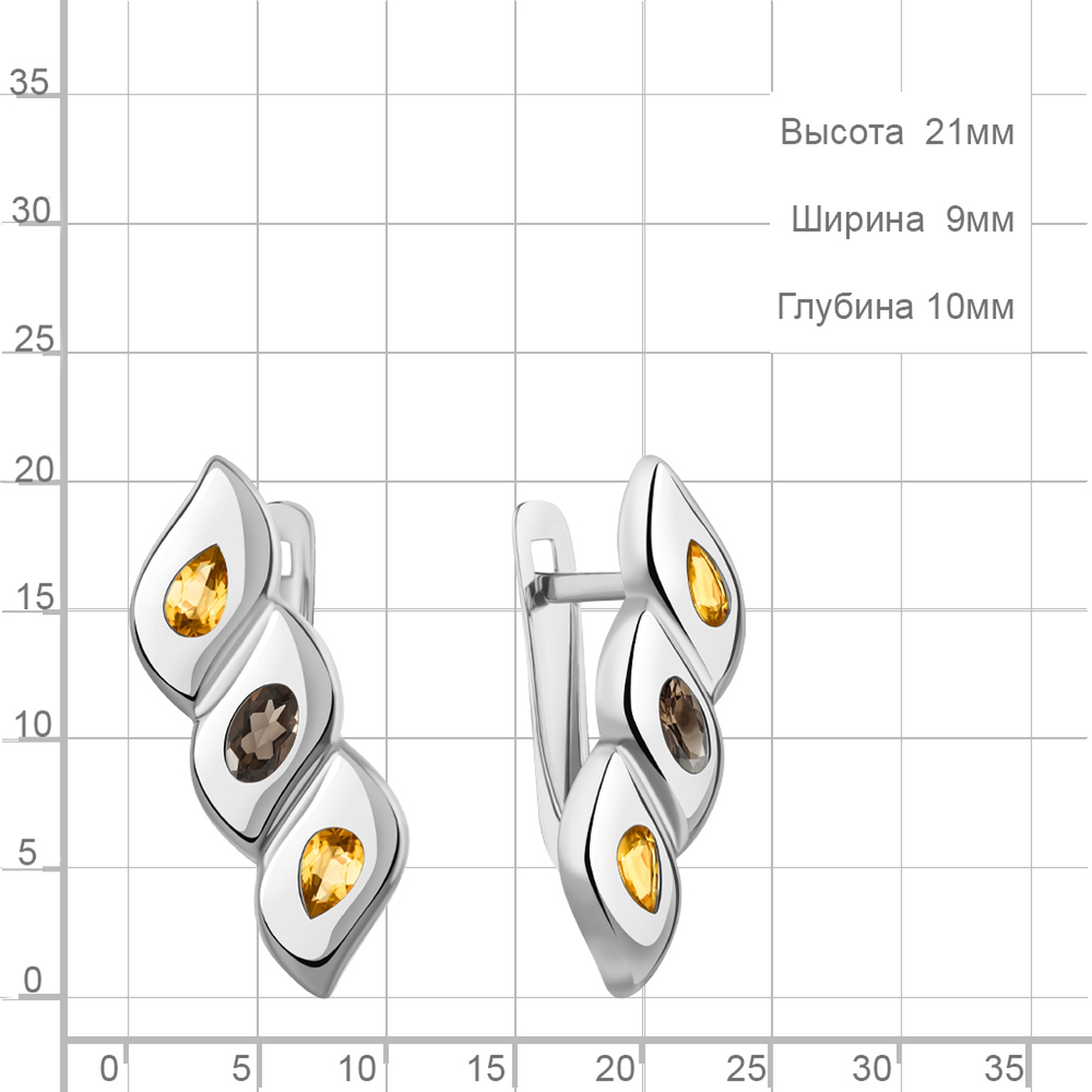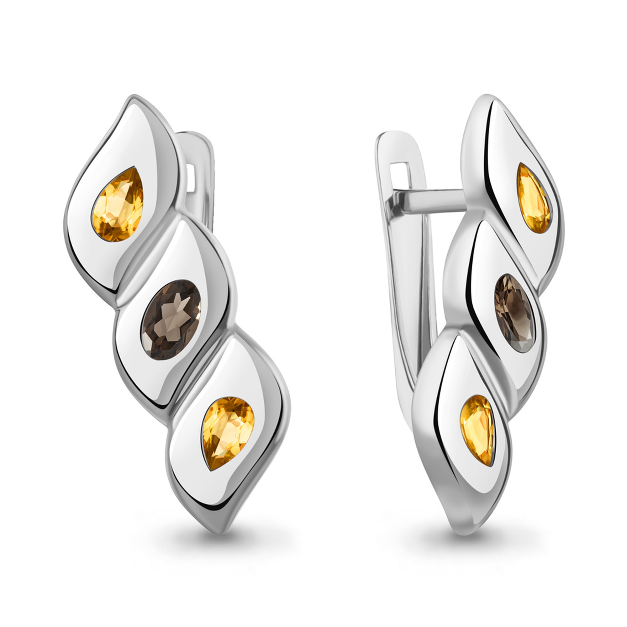 Серебряные серьги AQUAMARINE с цитрином и кварцем А45027635