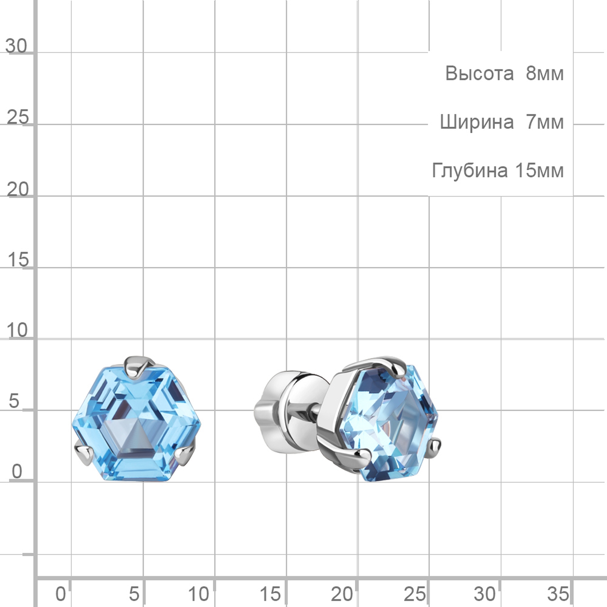 Длина 8 мм Ширина 8 мм Длина штифта 9 мм Длина штифта до резьбы 3 мм Длина штифта до замка 3 мм Размер камня 8*7 мм