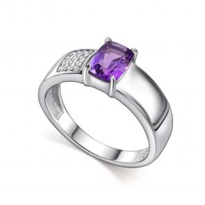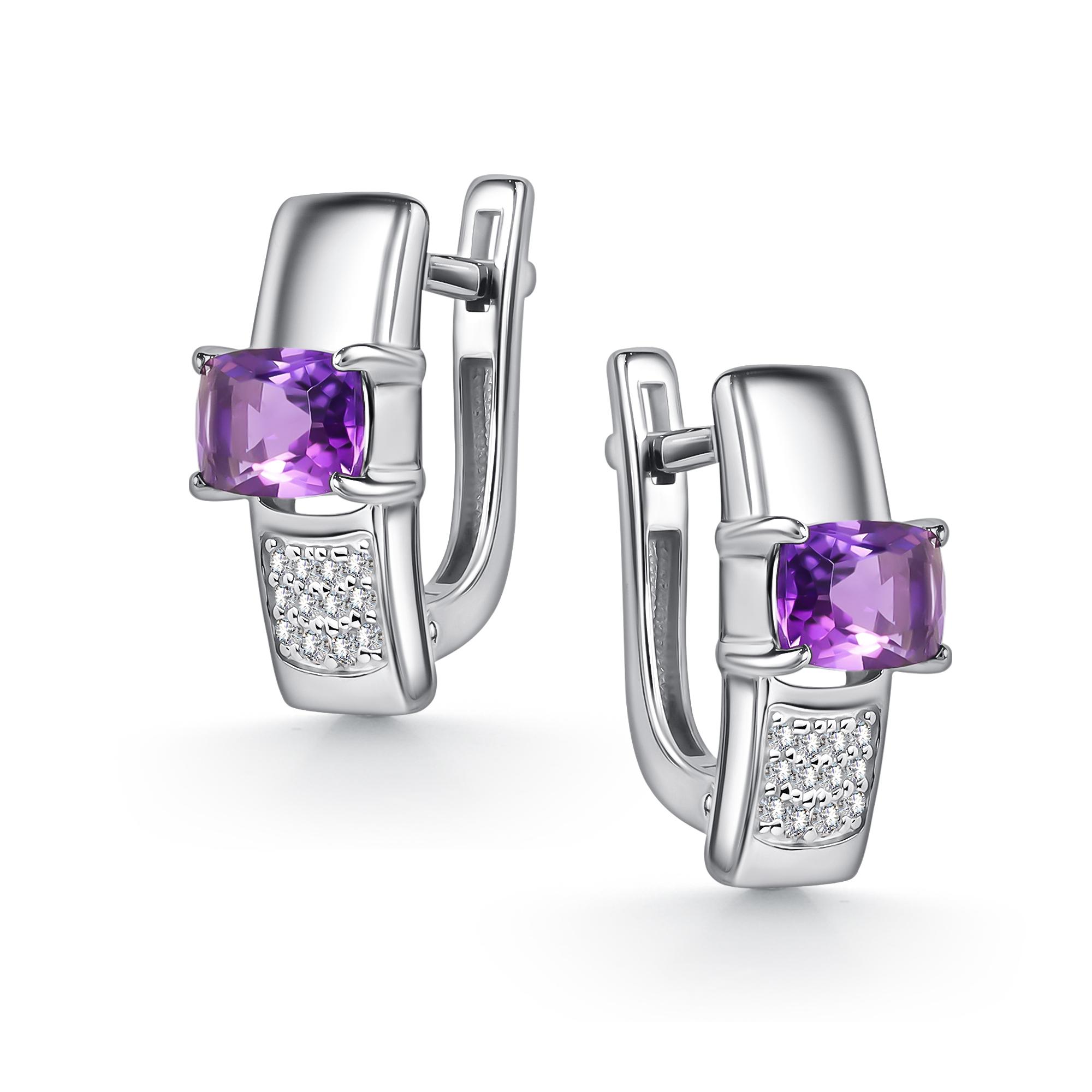 Серебряные серьги АЛЬКОР с фианитом и аметистом 02-5387/00АМ-00