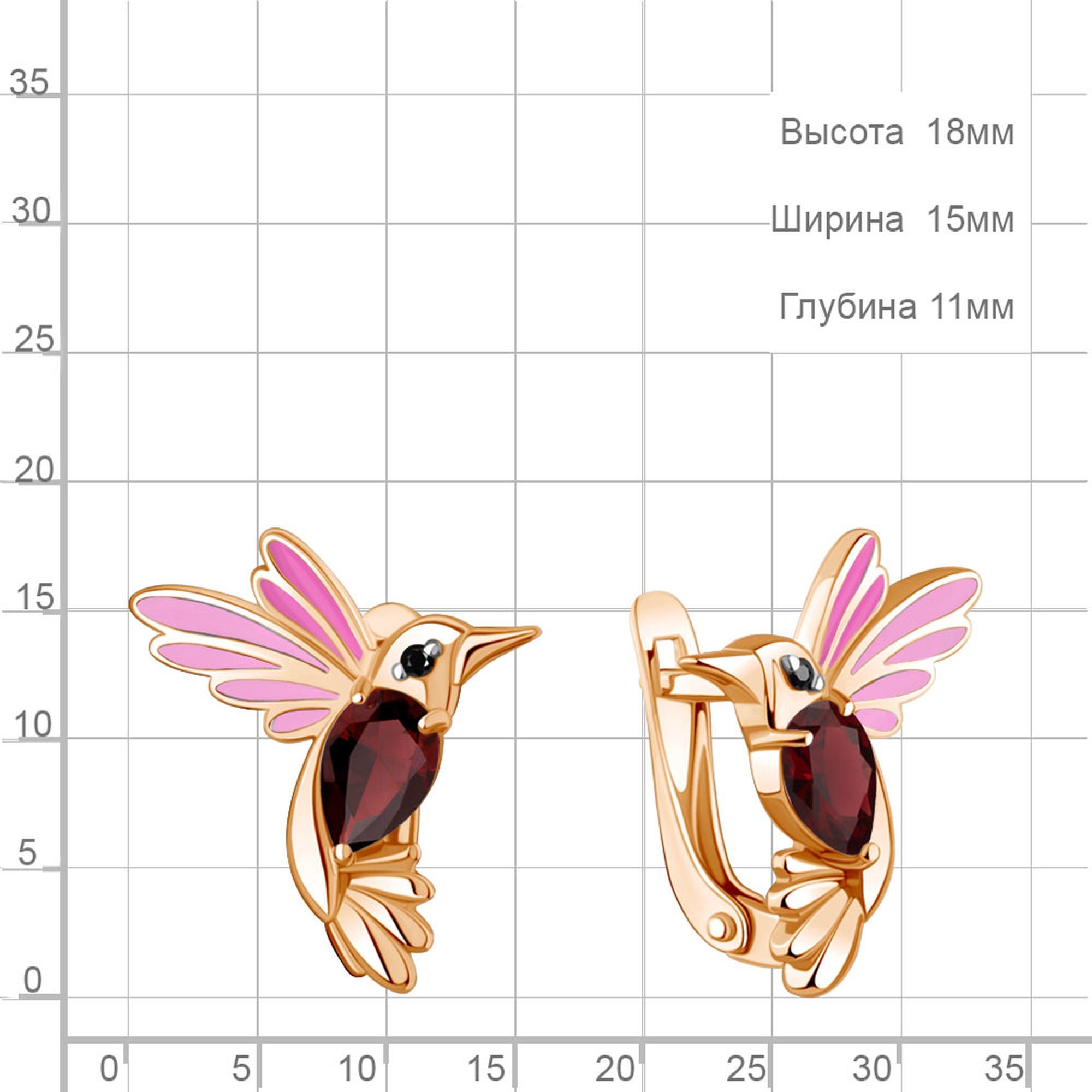 Серьги из золочёного серебра AQUAMARINE с гранатом, эмалью и ювелирным кристаллом А45026803Ч-п