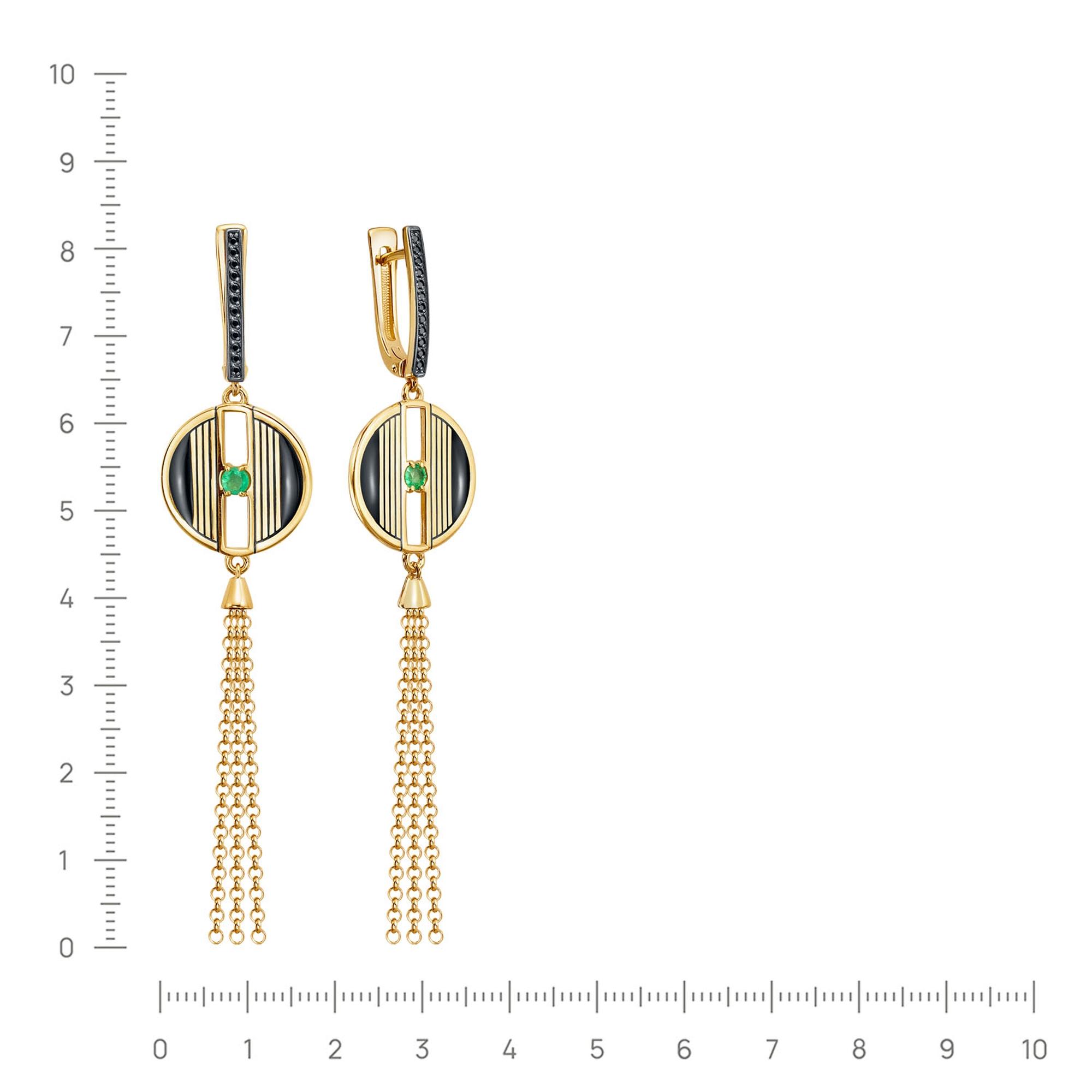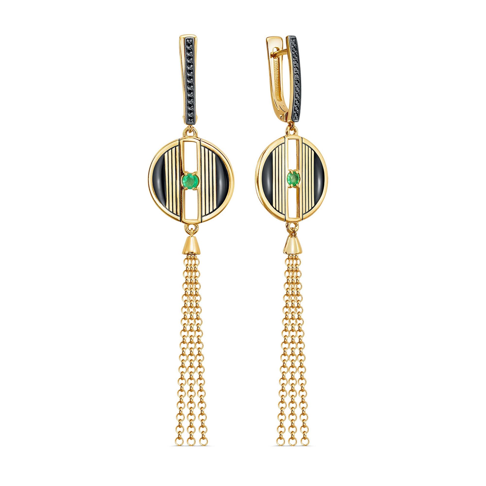 Серьги из золочёного серебра KABAROVSKY с фианитом, изумрудом и эмалью K12-937-1202