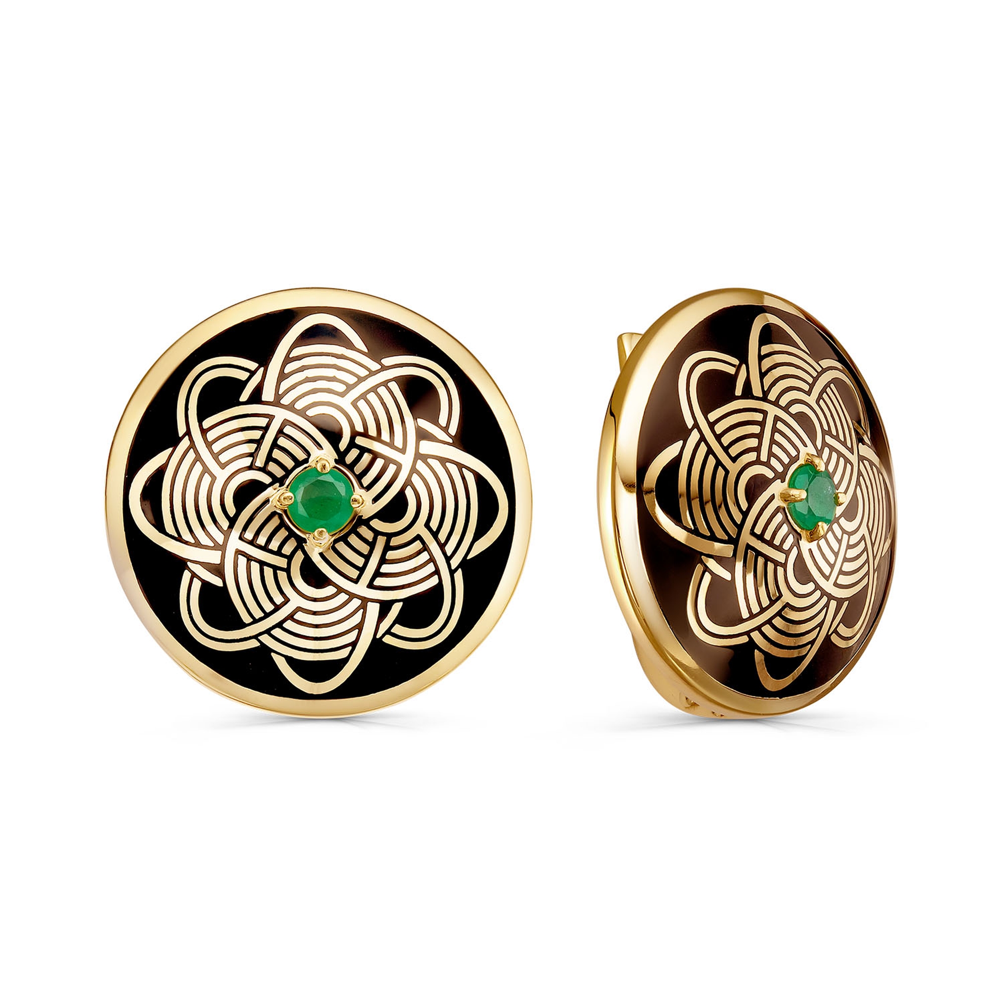 Серьги из золочёного серебра KABAROVSKY с изумрудом и эмалью K12-941-1202
