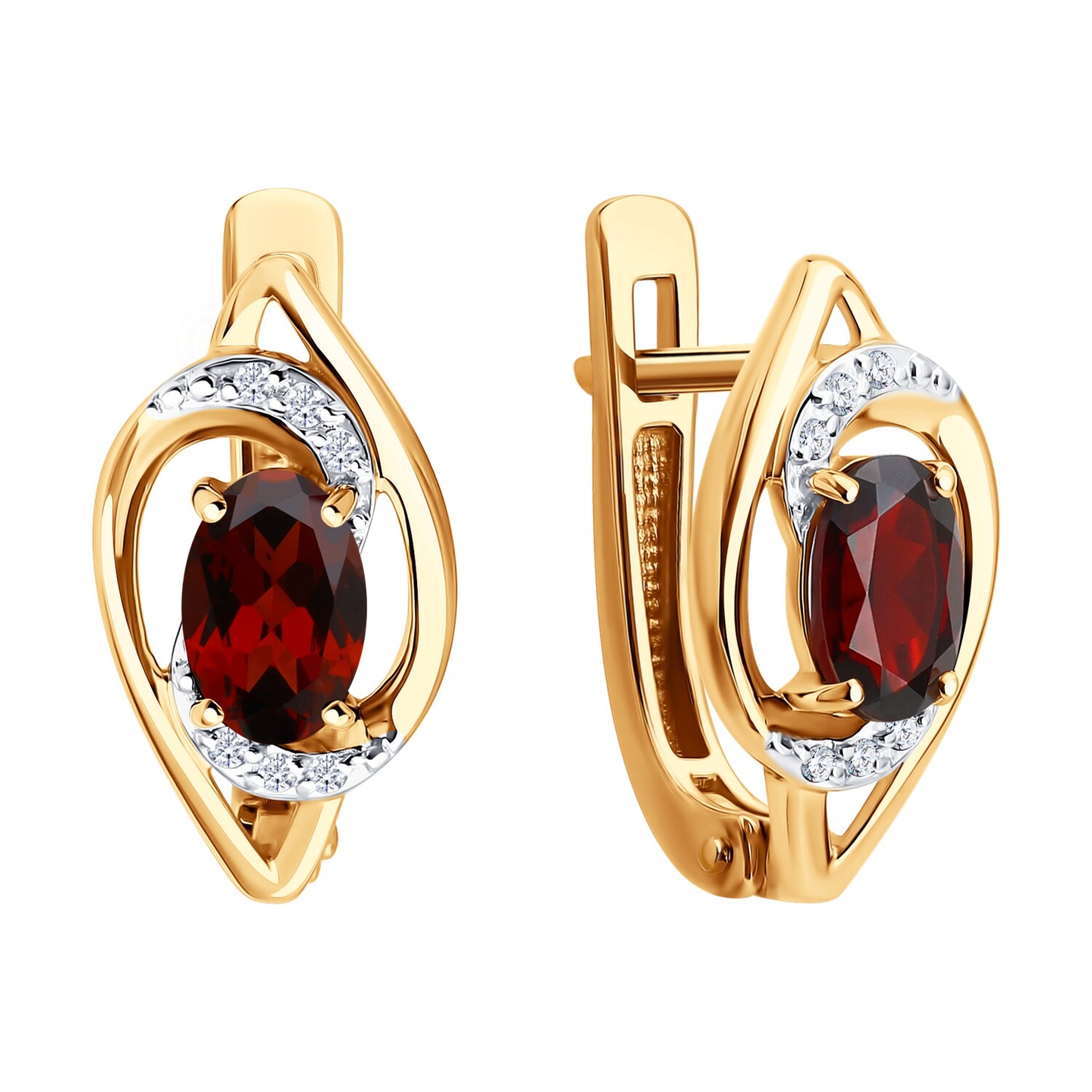 Золотые серьги SOKOLOV с фианитом и гранатом 729348