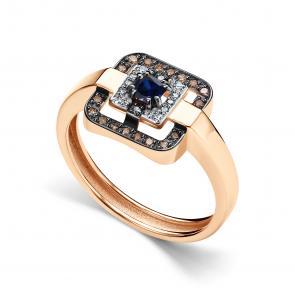 Золотые серьги АЛЬКОР с бриллиантом, сапфиром и коньячным бриллиантом 26697-170