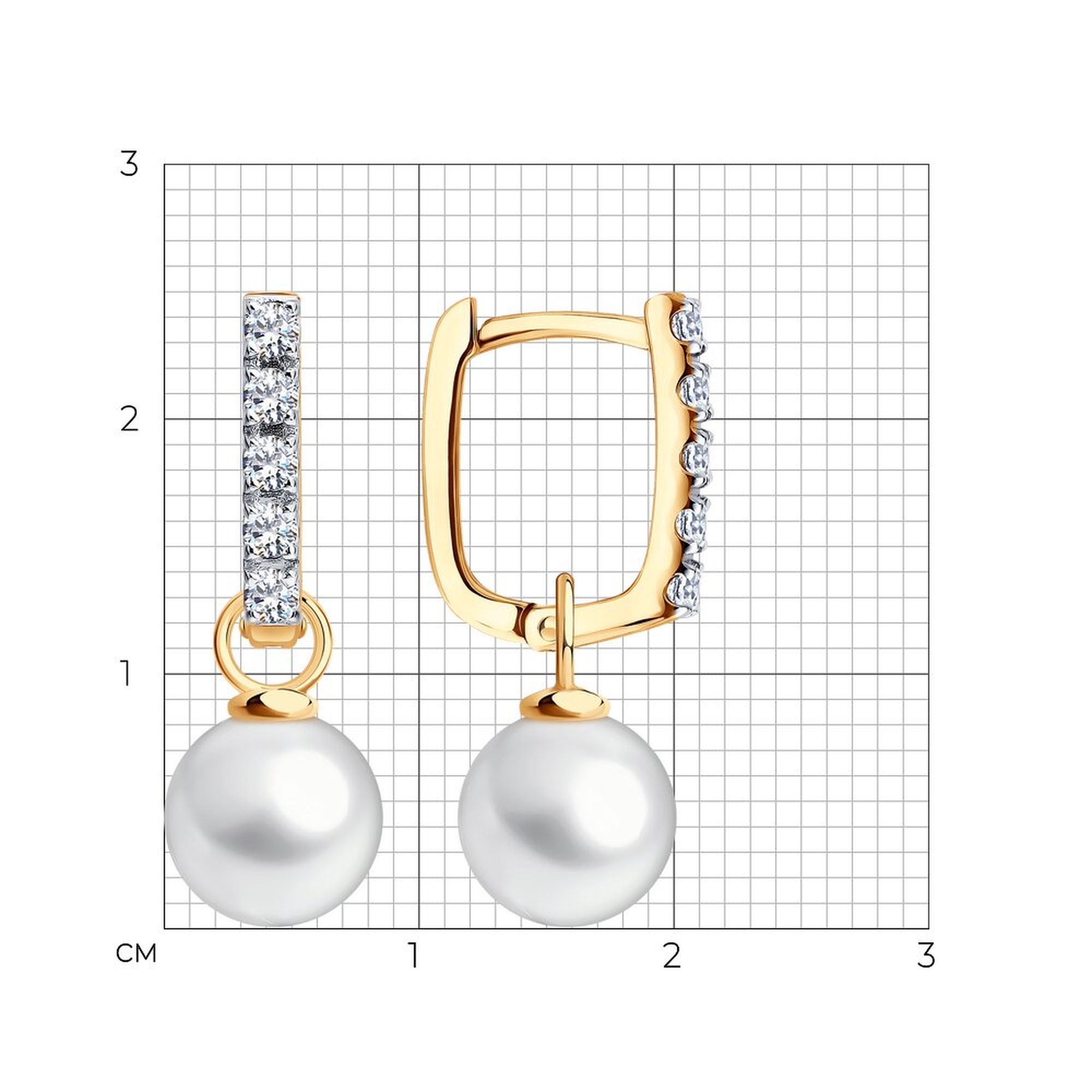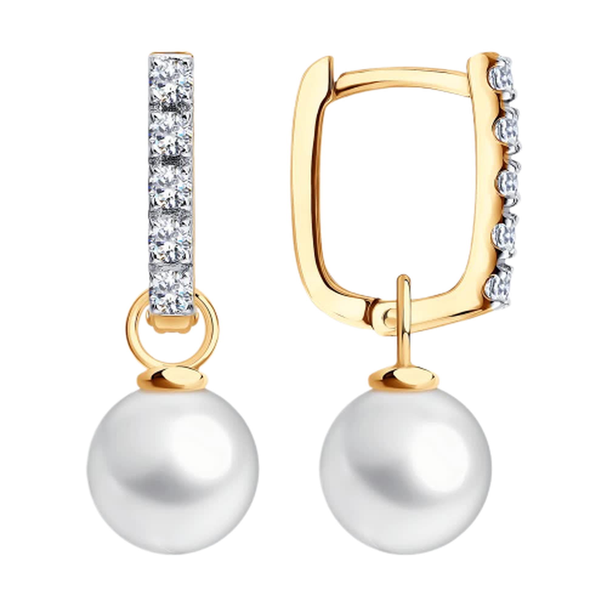 Золотые серьги-трансформеры SOKOLOV с жемчугом и фианитом 792489