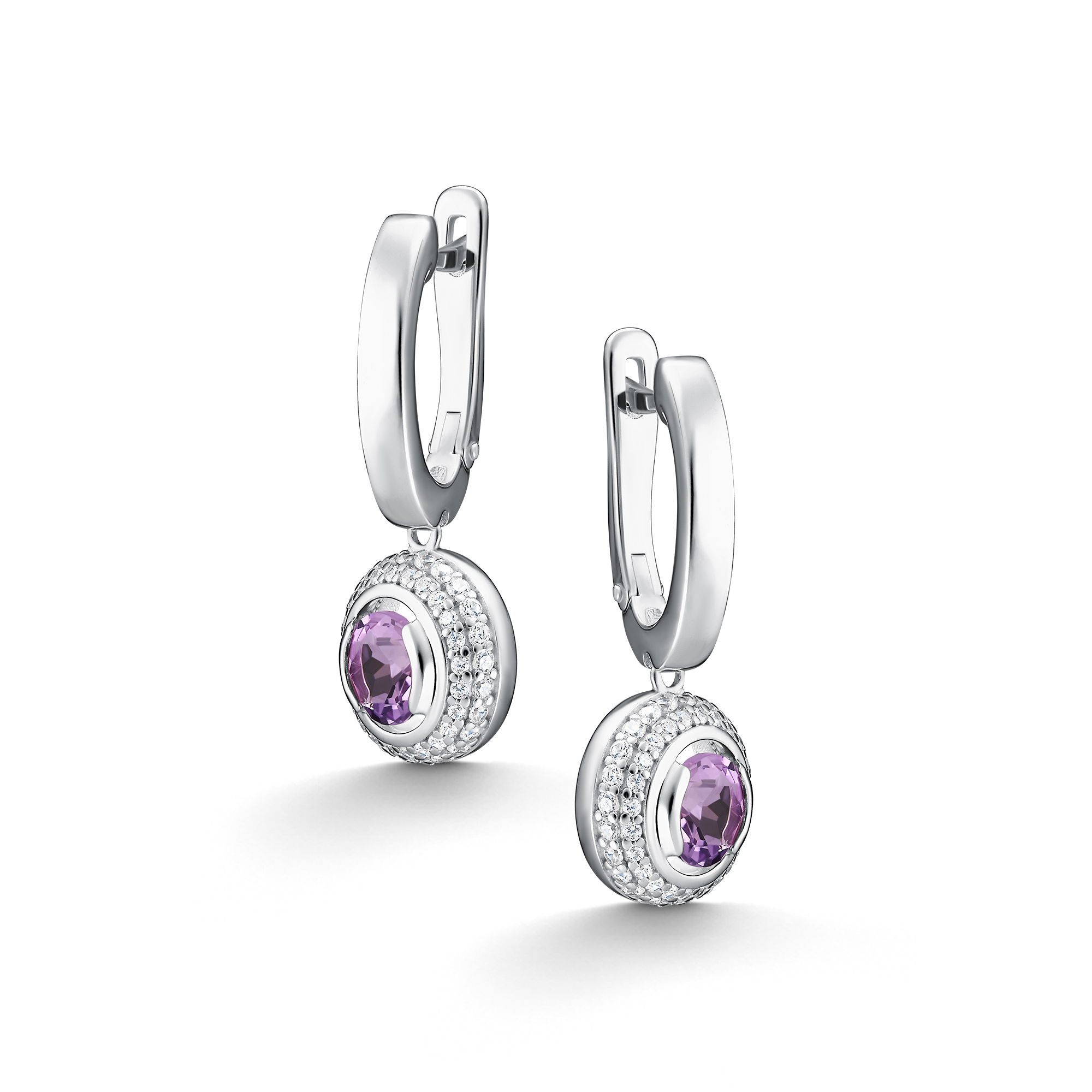 Серебряные серьги АЛЬКОР с фианитом и аметистом 02-5157/00АМ-00