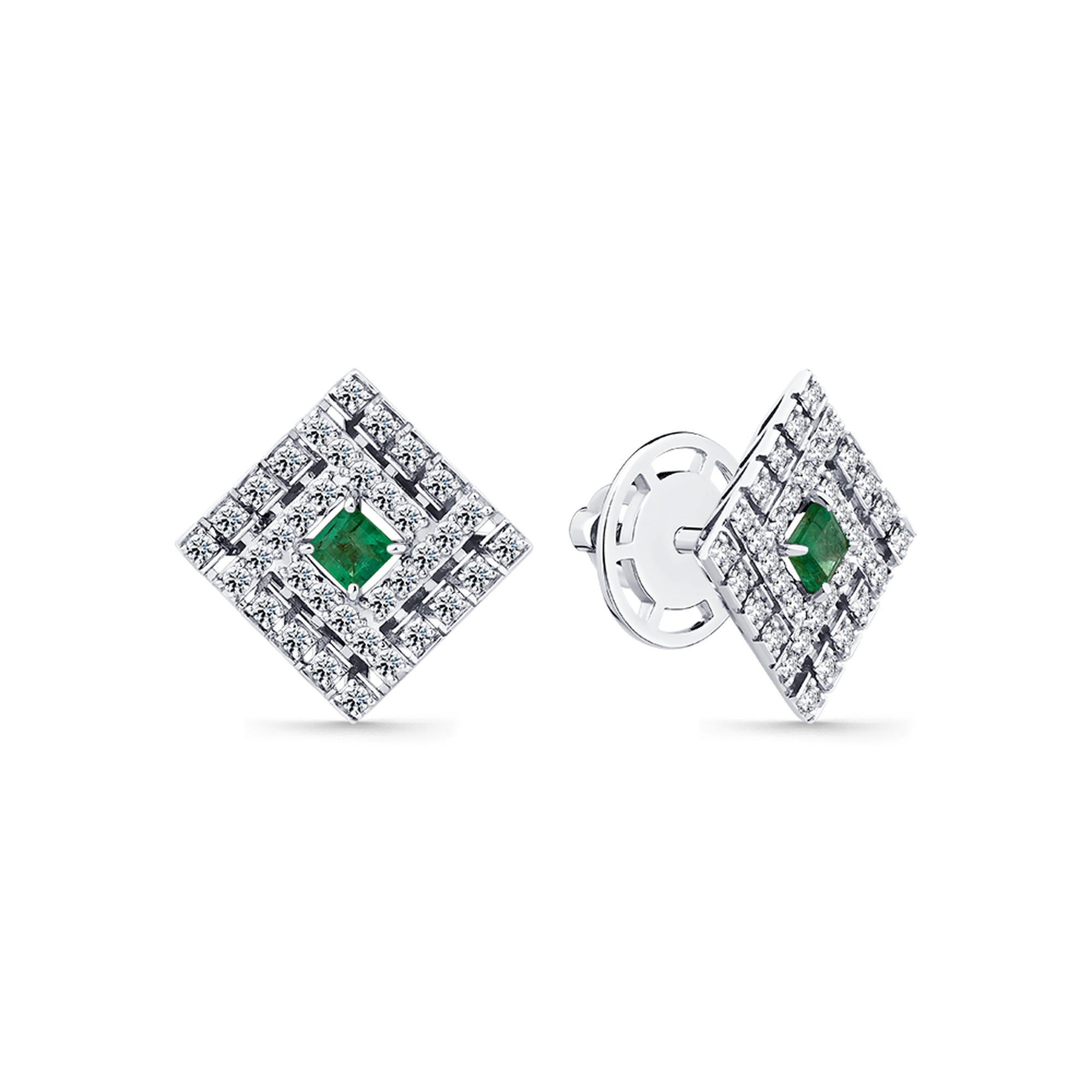 Серьги из белого золота Мастер Бриллиант с бриллиантом и изумрудом 05M2-202306-00-01