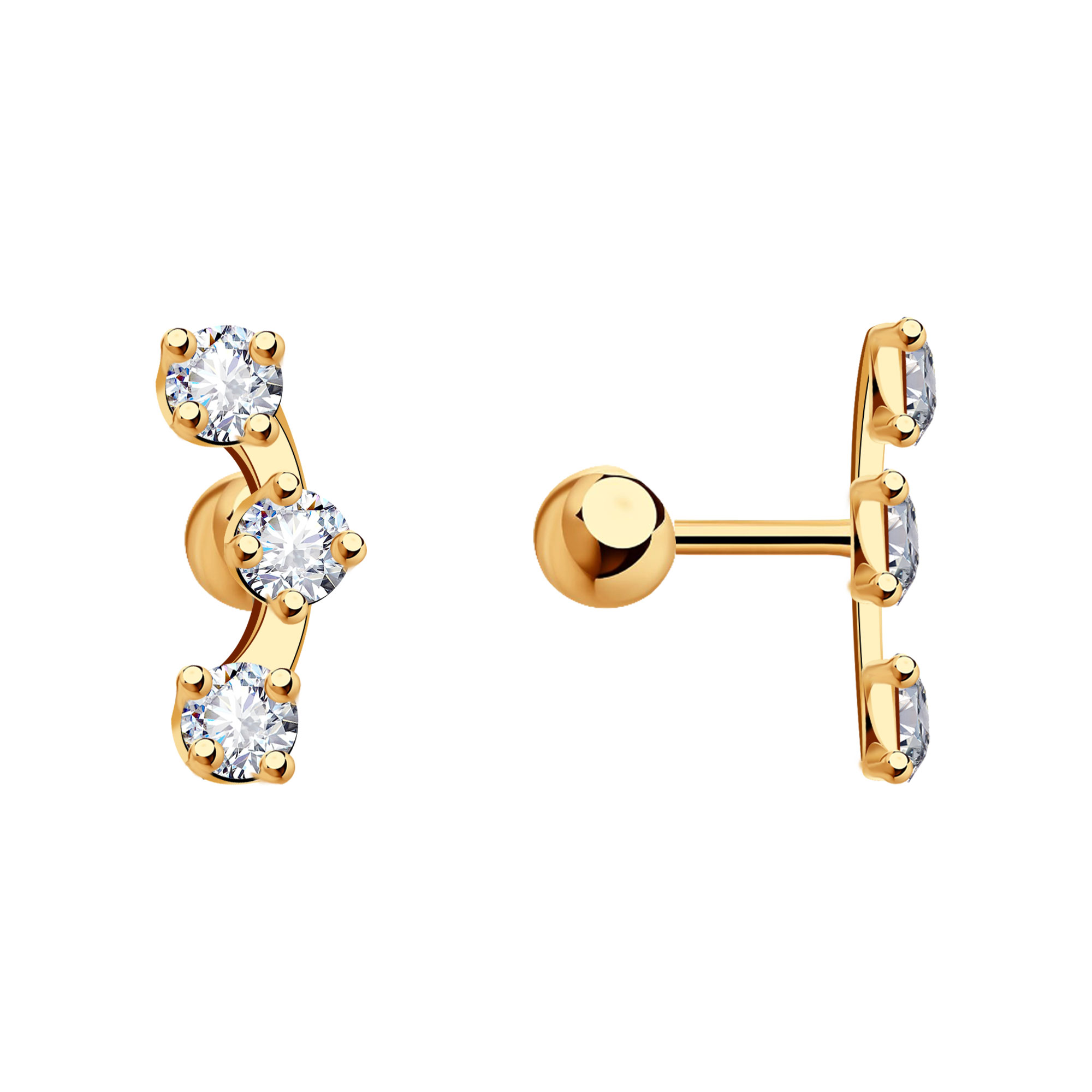 Одиночная серьга в хрящ уха ТД Эстет с фианитом 01С1115122S