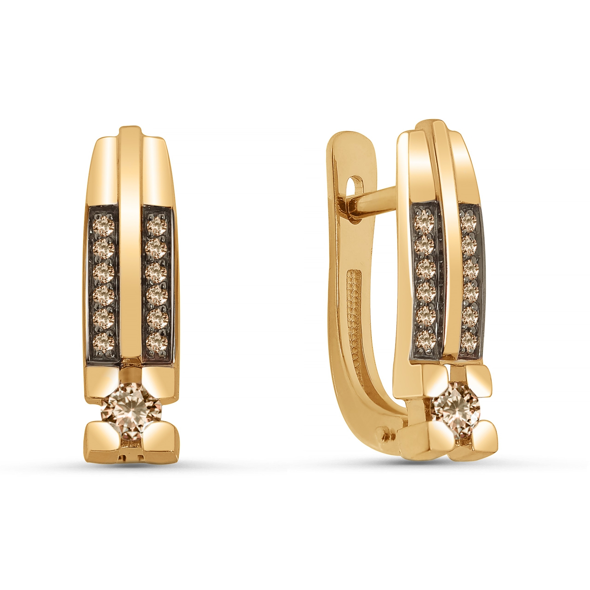 Золотые серьги ERA Jewellery с коньячным бриллиантом 02-03254-01-034-01-05