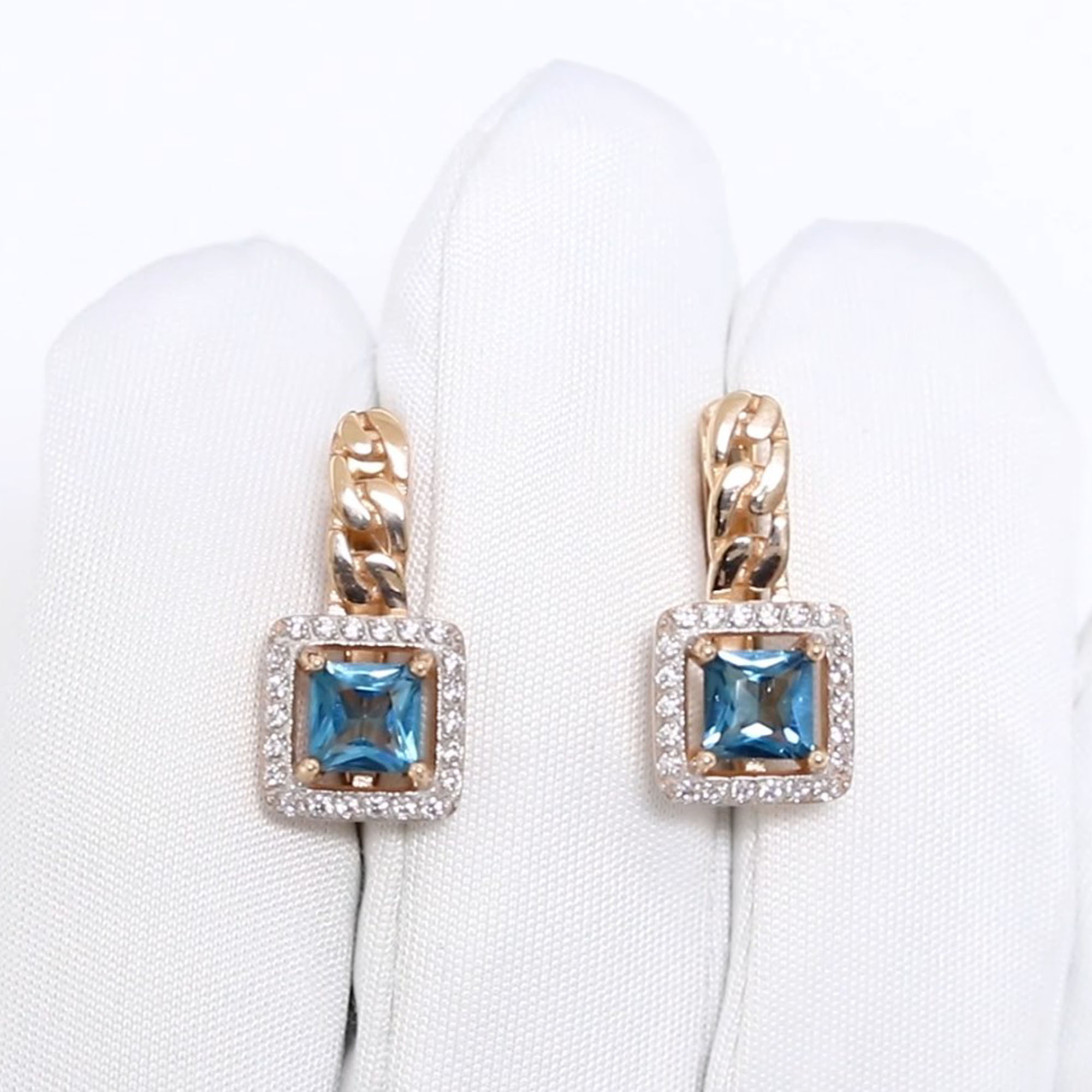 Золотые серьги Александра с фианитом и Лондон топазом кл4614а-28ск