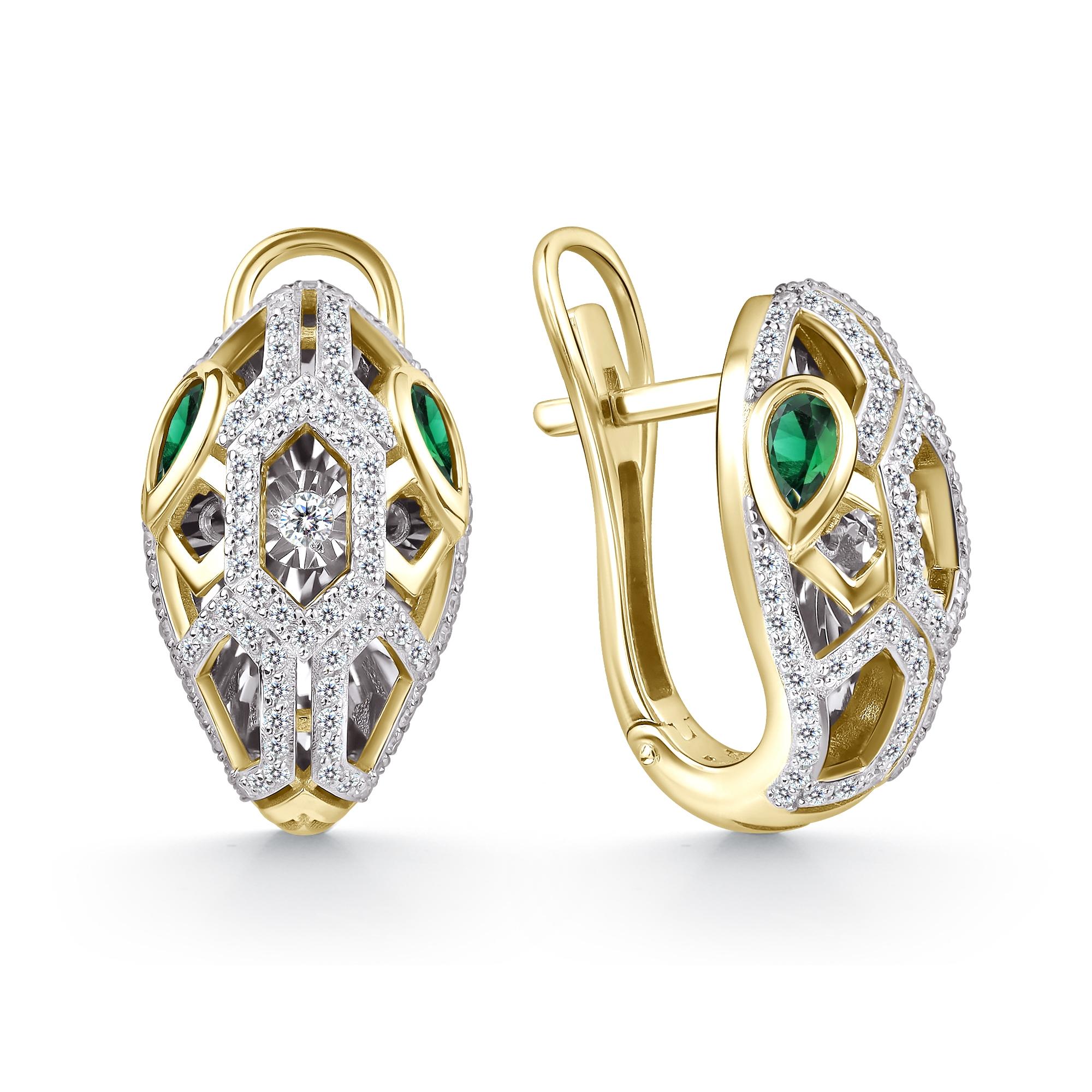 Серьги из лимонного золота GRIGORIEV с бриллиантом и изумрудом Г02-13-51041-31-01