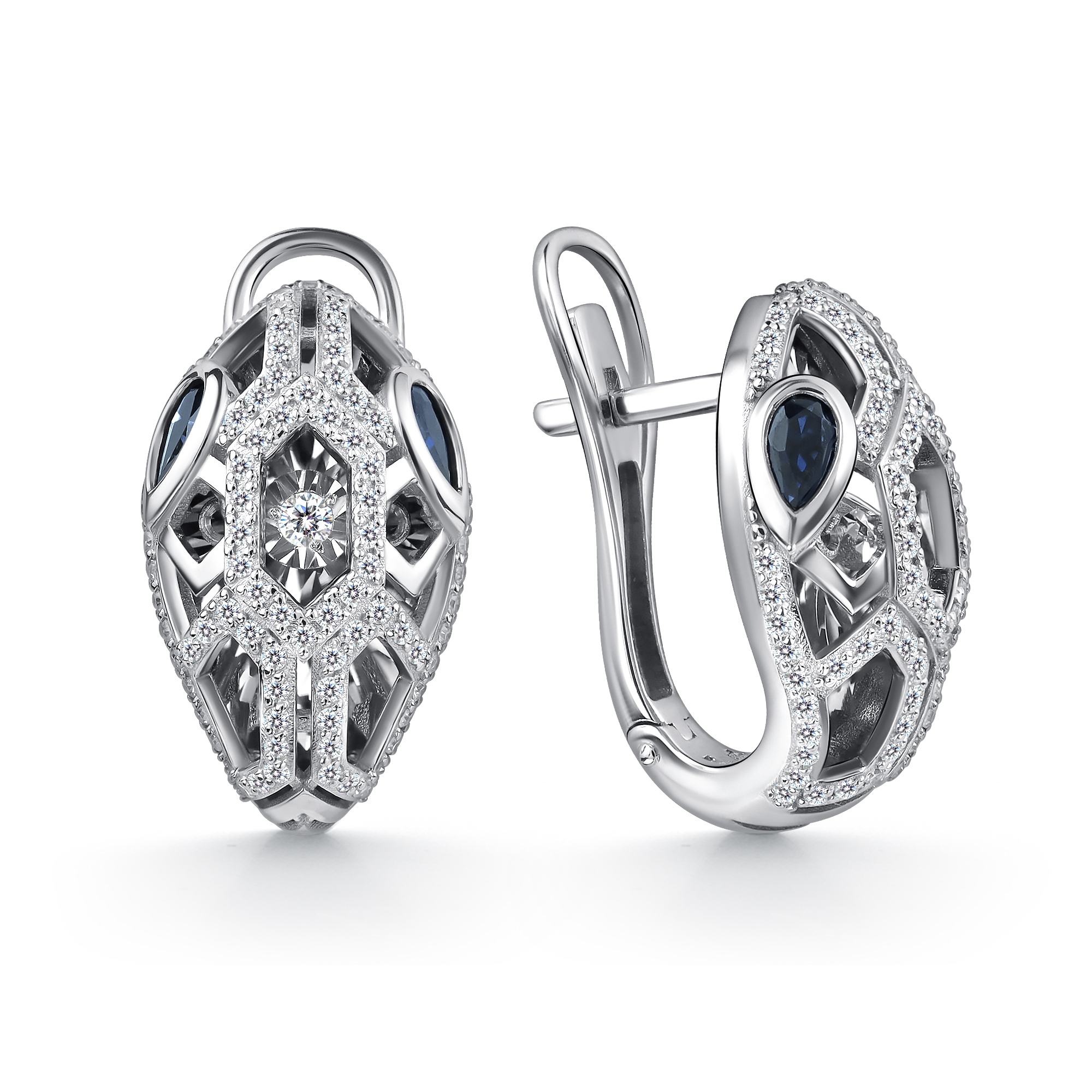 Серьги из белого золота GRIGORIEV с бриллиантом и сапфиром Г02-12-51041-31-02