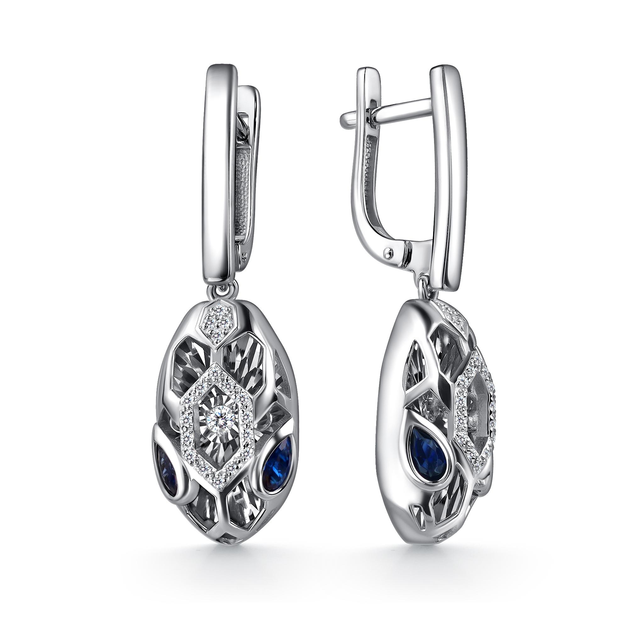 Серьги из белого золота GRIGORIEV с бриллиантом и сапфиром Г02-12-5942-31-02-1