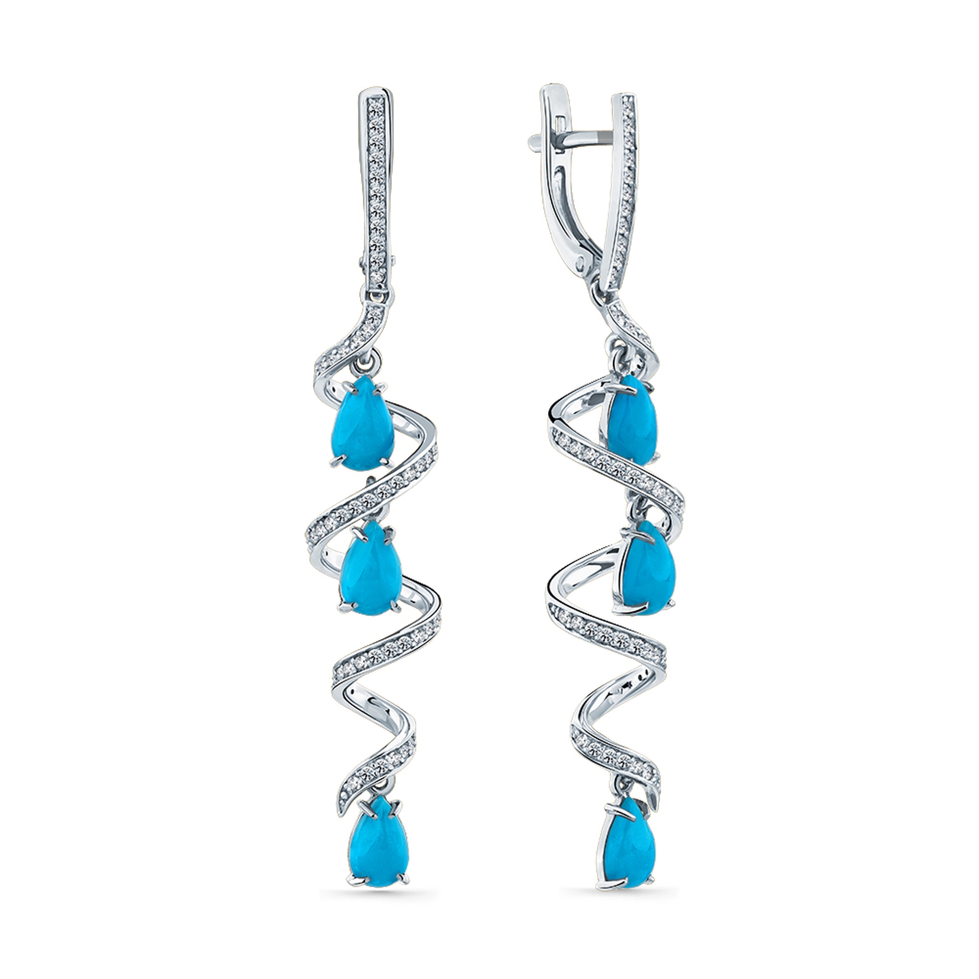 Серьги из белого золота Мастер Бриллиант с бриллиантом и бирюзой 05M2-209378-00-38