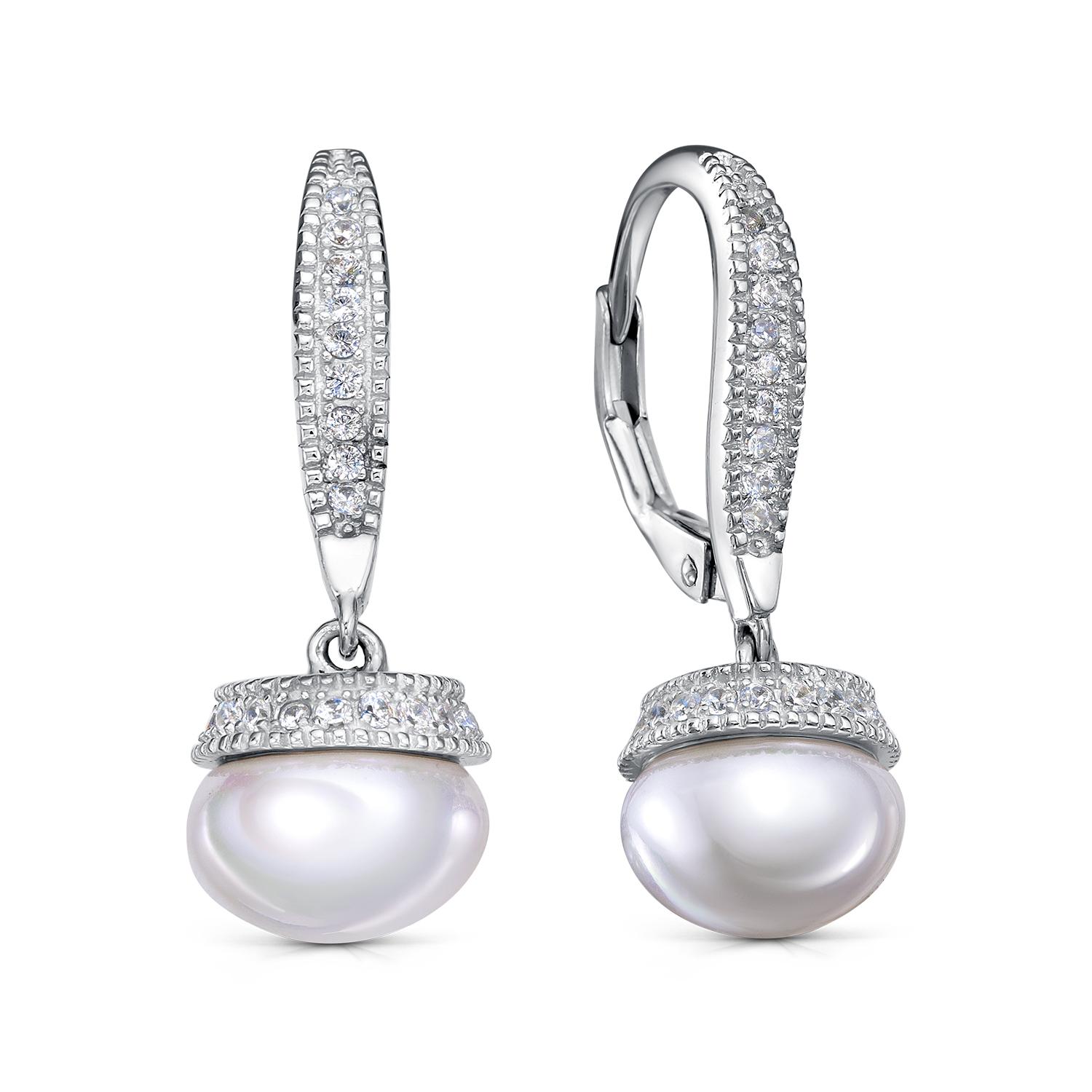 Серебряные серьги KABAROVSKY с фианитом и жемчугом K12-9050-1500