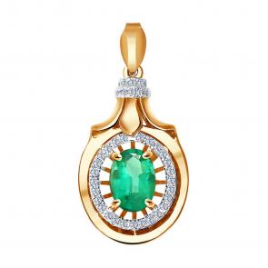 Золотые серьги SOKOLOV с бриллиантом и изумрудом 3020340
