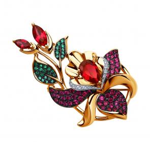 Золотые серьги SOKOLOV с фианитом и рубиновым корундом 725059