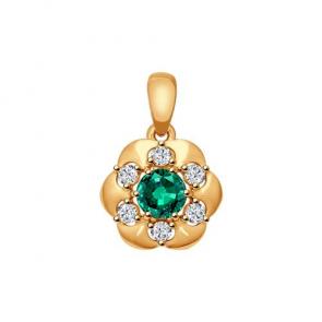 Серьги из золочёного серебра SOKOLOV с фианитом и гидротермальным изумрудом 82020003